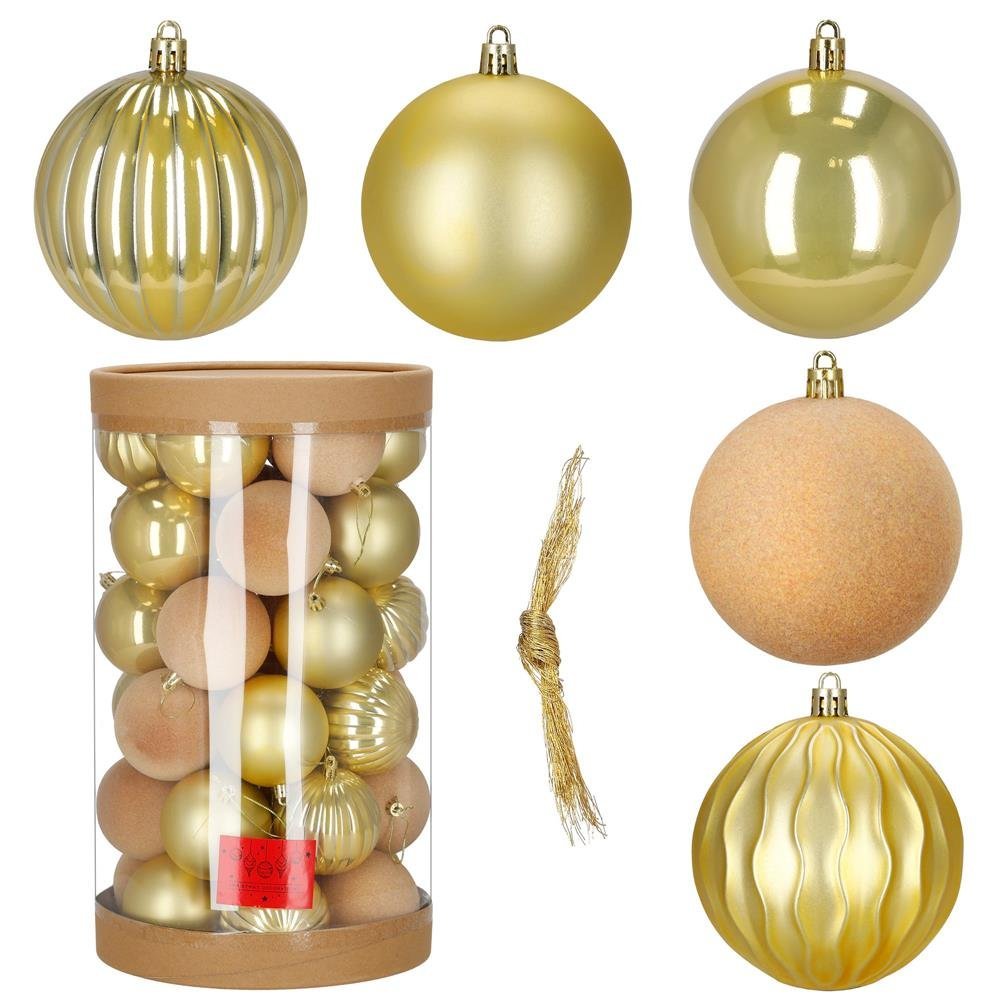 Set globuri decorative, 36 bucati, plastic, 6.5 cm, auriu si ecru