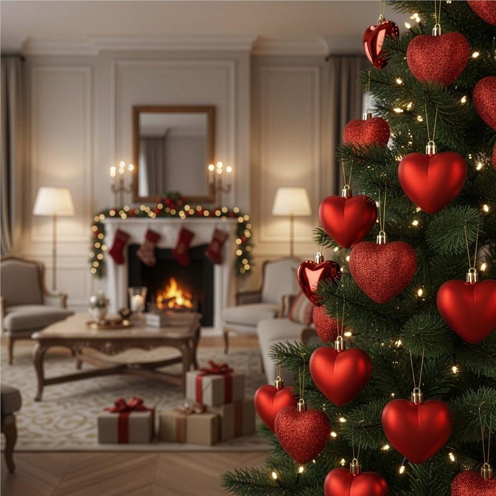 Specification: Set globuri decorative in forma de inima, 16 bucati, plastic, 4-7 cm, rosu
