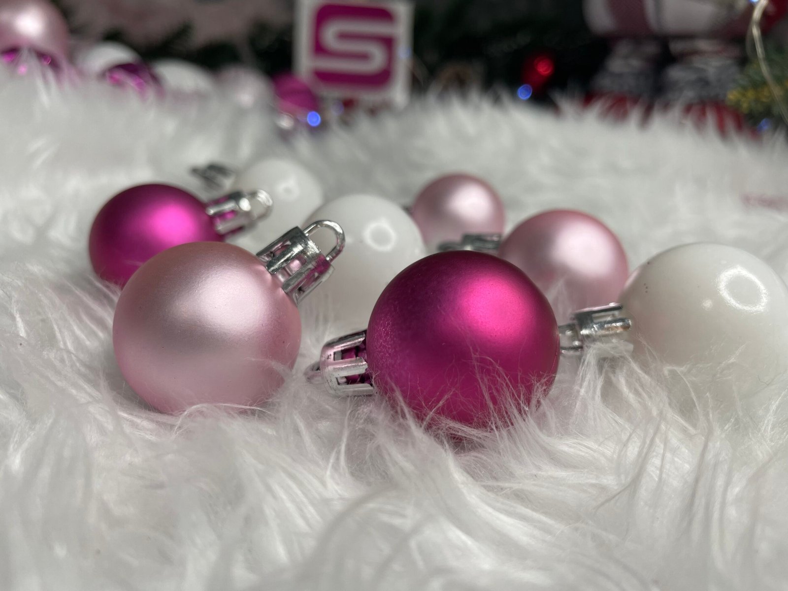 Set globuri si decoratiuni de Craciun, 101 piese, diverse dimensiuni, alb roz
