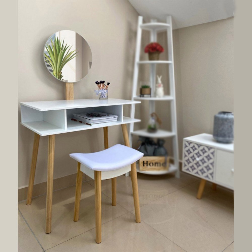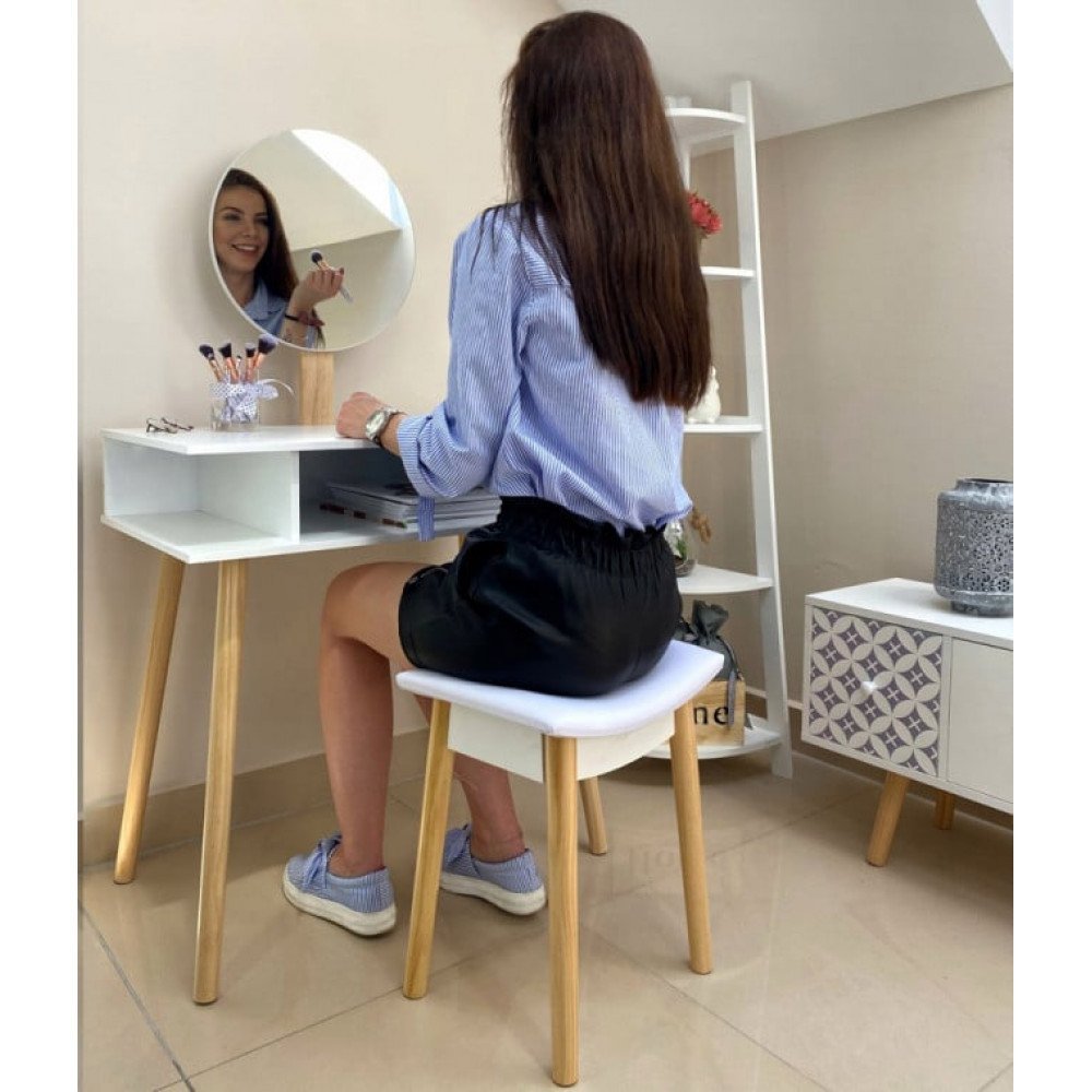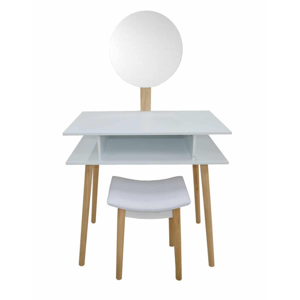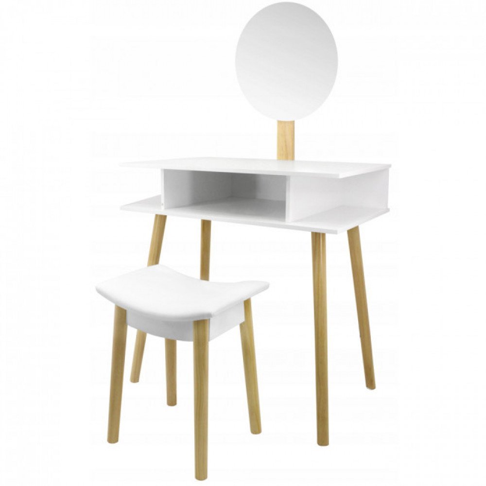 Set Masa de toaleta si machiaj cu taburet Scandinav, alba, cu oglinda, 75x45x130 cm