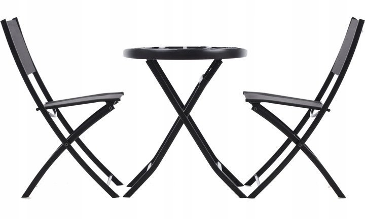 Specificatii tehnice Tip produs: set masa si 2 scaune pliante Dimensiuni masa: 60×70 cm (diametru blat: 60 cm) Material blat masa: sticla neagra securizata 5 mm Structura masa: otel vopsit in camp electrostatic Profil cadru masa: 28×14 mm Greutate maxima suportata masa: 60 kg Dimensiuni scaun: 42x44x84 cm Material sezut si spatar scaun: material textil tip textilena 2×1 Structura scaun: otel vopsit in camp electrostatic Profil cadru scaun: 14×28 mm Greutate maxima suportata scaun: 140 kg Culoare: negru Functie pliabila: da, toate piesele sunt pliante Utilizare recomandata: balcon, terasa, gradina, interior Scurta descriere Acest set de mobilier pliabil este alegerea ideala pentru spatii mici, precum balconul sau terasa. Masa cu blat din sticla securizata si cele doua scaune ergonomice din material textil ofera atat rezistenta, cat si confort. Structura metalica vopsita electrostatic asigura durabilitate si rezistenta la intemperii. Designul modern si functia pliabila transforma acest set intr-o solutie practica si eleganta. Caracteristici principale Toate piesele sunt pliabile pentru depozitare usoara Masa cu blat rotund din sticla securizata 5 mm Scaune cu sezut si spatar din material textil respirabil Cadru metalic vopsit rezistent la exterior Design modern si compact Ideal pentru balcon, terasa sau bucatarie mica