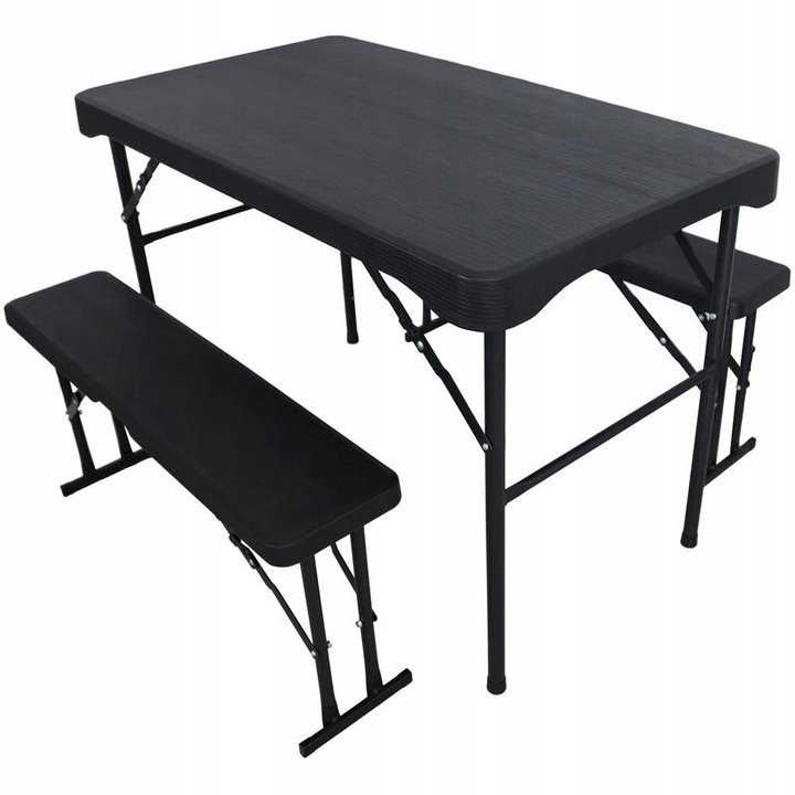 Specification: Set mobilier de camping pliabil, masa cu 2 banci, structura otel cu HDPE, 108x60cm, negru