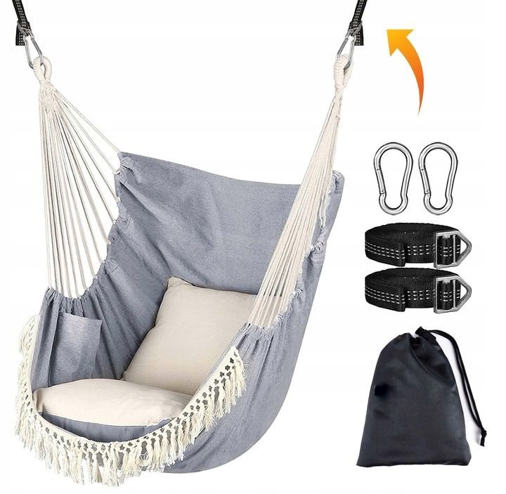Kit de montaj pentru hamace / leagane de gradina, format din curele solide si carlige de prindere. 2 benzi de montaj cu carlige cu clichet (lungime banda: 3m, latime banda: 2,5 cm). Produs ambalat intr-o punga practica de depozitare. Incarcare maxima: 300 kg Set de montare universal pentru fixarea hamacelor, sezlongurilor, balansoarelor. Asigura o fixare stabila si astfel – siguranta in timpul utilizarii. Carligul este echipat cu un sistem de eliberare rapida si un sistem de blocare impotriva detasarii bruste. Franghia solida va asigura o fixare ferma.