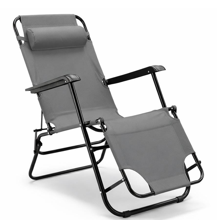 Sezlong pliabil cu pozitie orizontala, tetiera reglabila, cadru metalic, 153x60x88 cm, gri