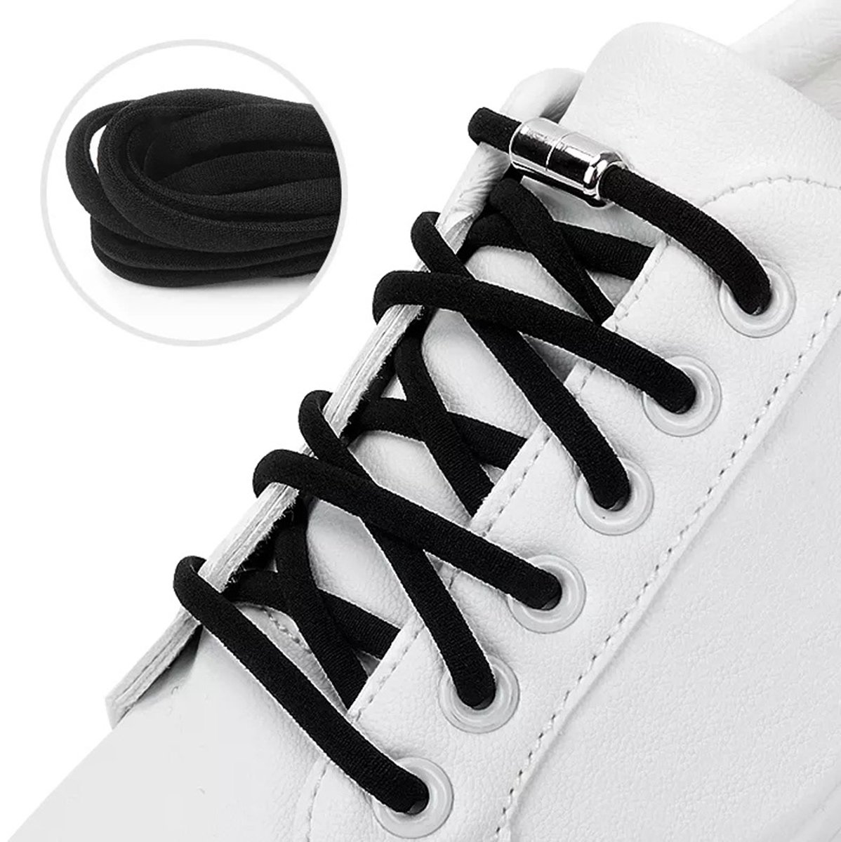Specification: Sireturi elastice SMART pentru incaltaminte cu clema metalica, culoare neagra