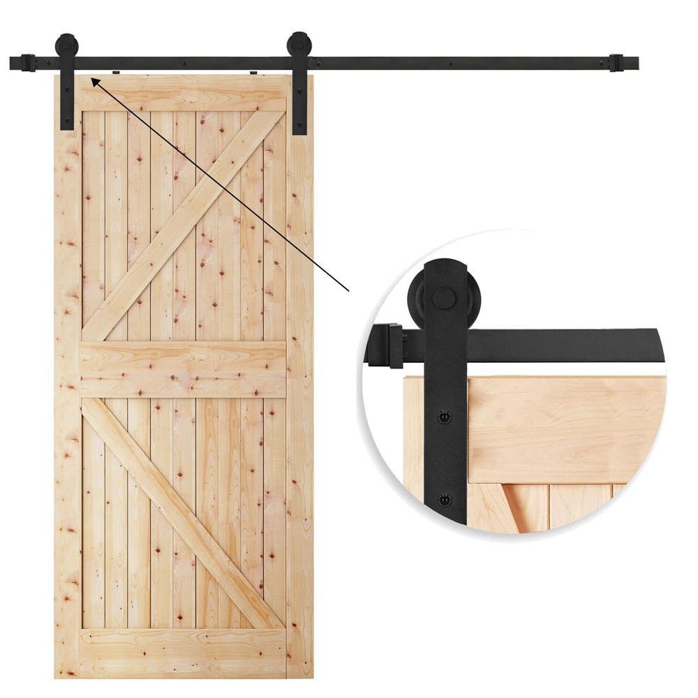Specification: Sistem glisant pentru usa, sina metalica 183 cm, 2 role, montaj pe perete, negru
