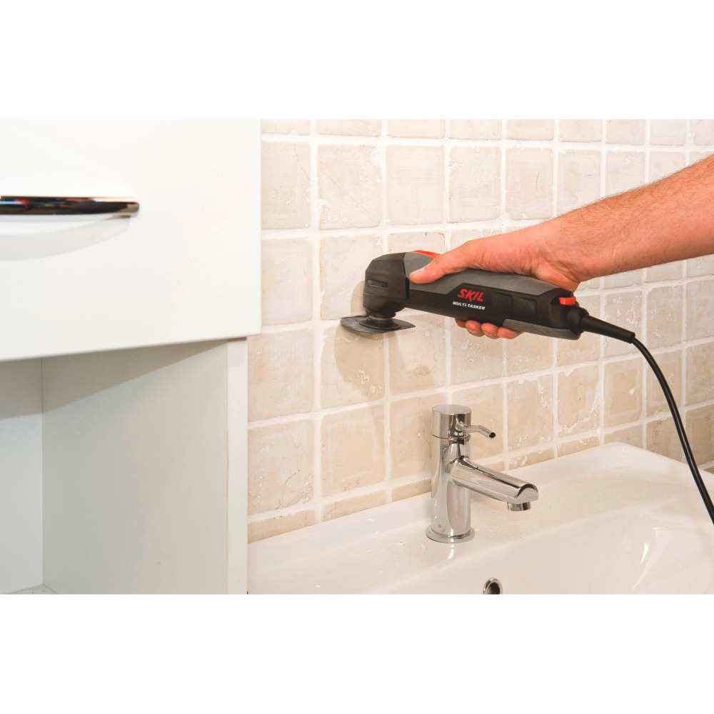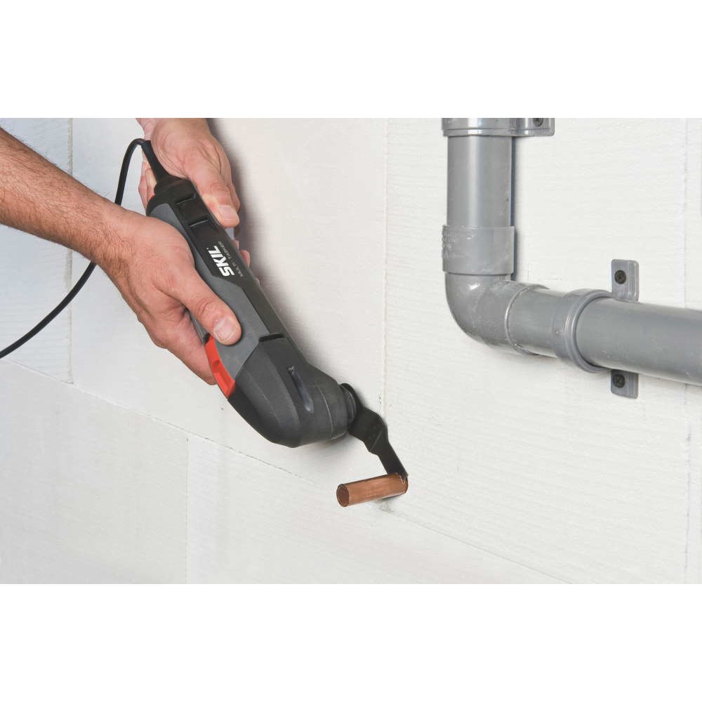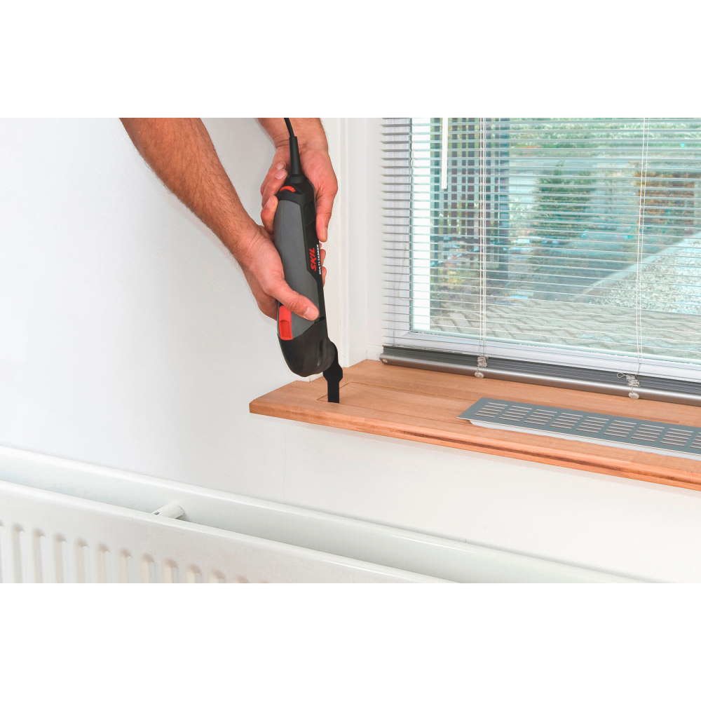 SKIL 1475 „Multi-Tasker“ oferă capacitate multilaterală extraordinară; puteți folosi această unealtă pentru numeroase aplicații în casă și în jurul casei. Fie că scurtați o placă de podea laminată, fie că executați o decupare pentru instalarea unei prize electrice sau șlefuiți rama unei ferestre, înainte de-a vopsi: puteți efectua fiecare lucrare în mod rapid și simplu, cu ajutorul numeroaselor accesorii disponibile pe piață. Mulţumită mişcării sale oscilatorii – de vibraţie – această unealtă este practică pentru tăiere şi decupare precisă, în locuri cu spaţiu restrâns. Se pot efectua tăieturi chiar și în planul pereților.