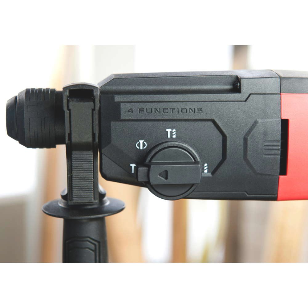 - Patru funcţii: 1. Găurire cu percuţie; 2. Funcţie de oprire percuţie pentru lucrări obişnuite de găurire; 3. Oprire rotaţie pentru lucrări de dăltuire uşoare; 4. Dăltuire cu rotaţie liberă pentru o libertate maximă de mişcare