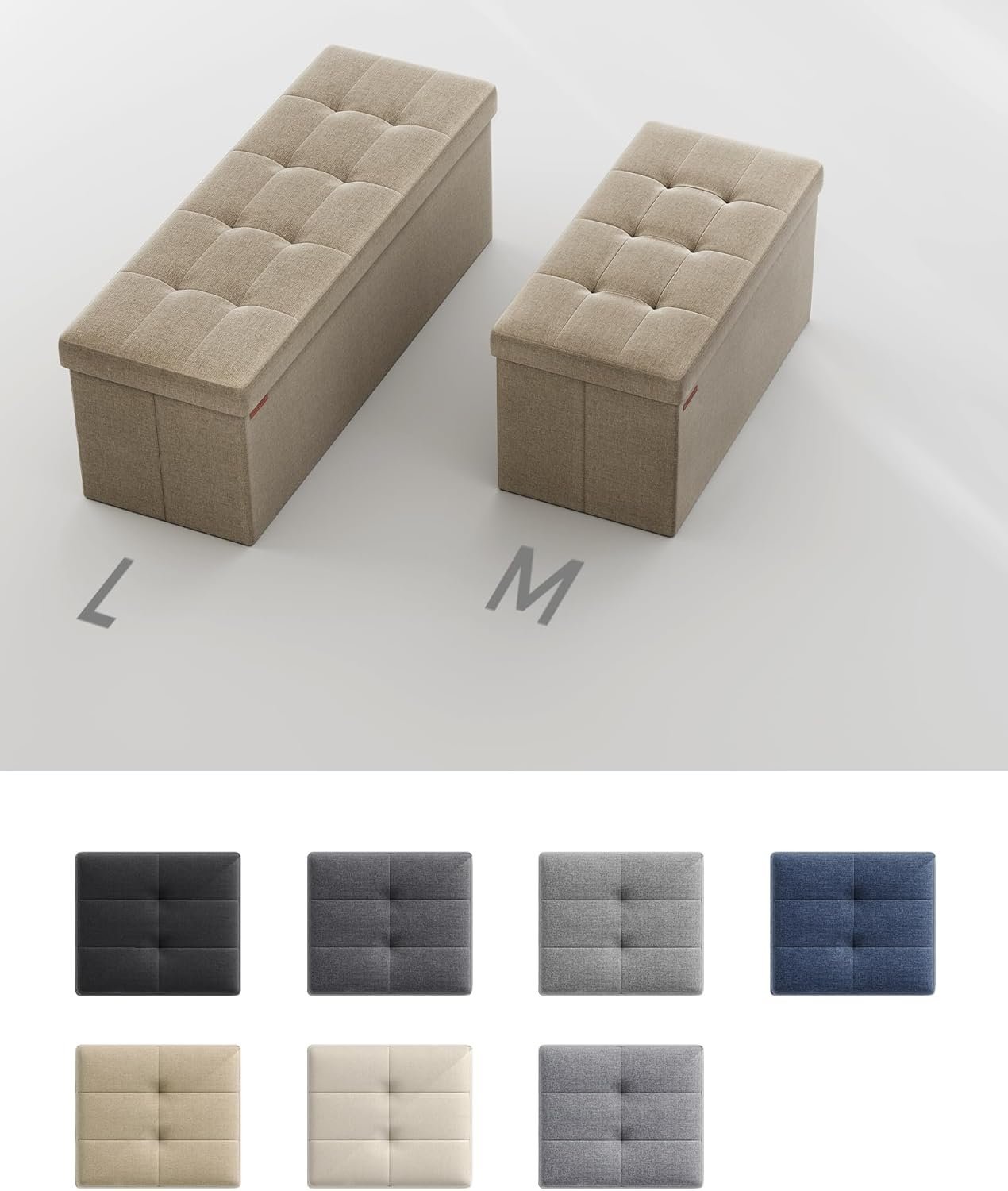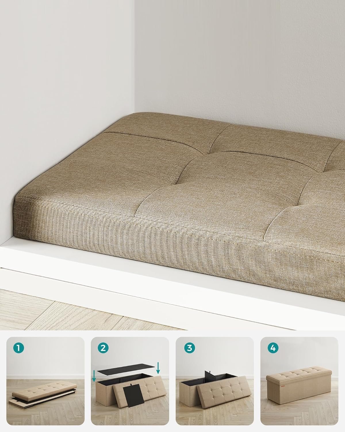 Specification: SONGMICS bancheta pliabila cu spatiu de depozitare 110x38x38 cm, MDF si material textil, capacitate 300 kg, maro camel