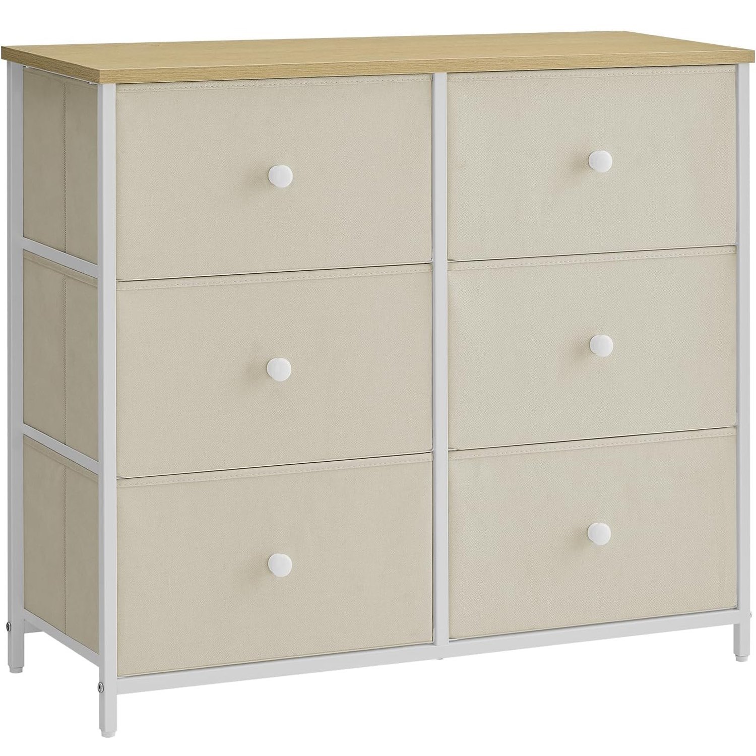 SONGMICS Comoda cu 6 sertare textile, cadru metalic, 80x30x71 cm, alb si crem