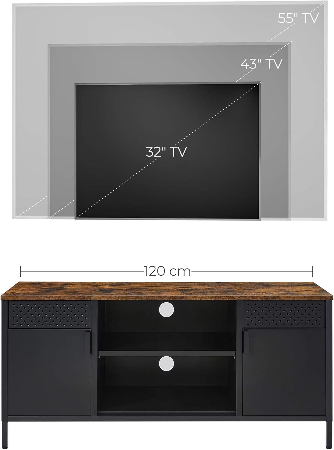 Specification: SONGMICS Comoda TV 120x40x55 cm, 3 rafturi reglabile, 2 usi, stil vintage, PAL si otel, maro-negru mat