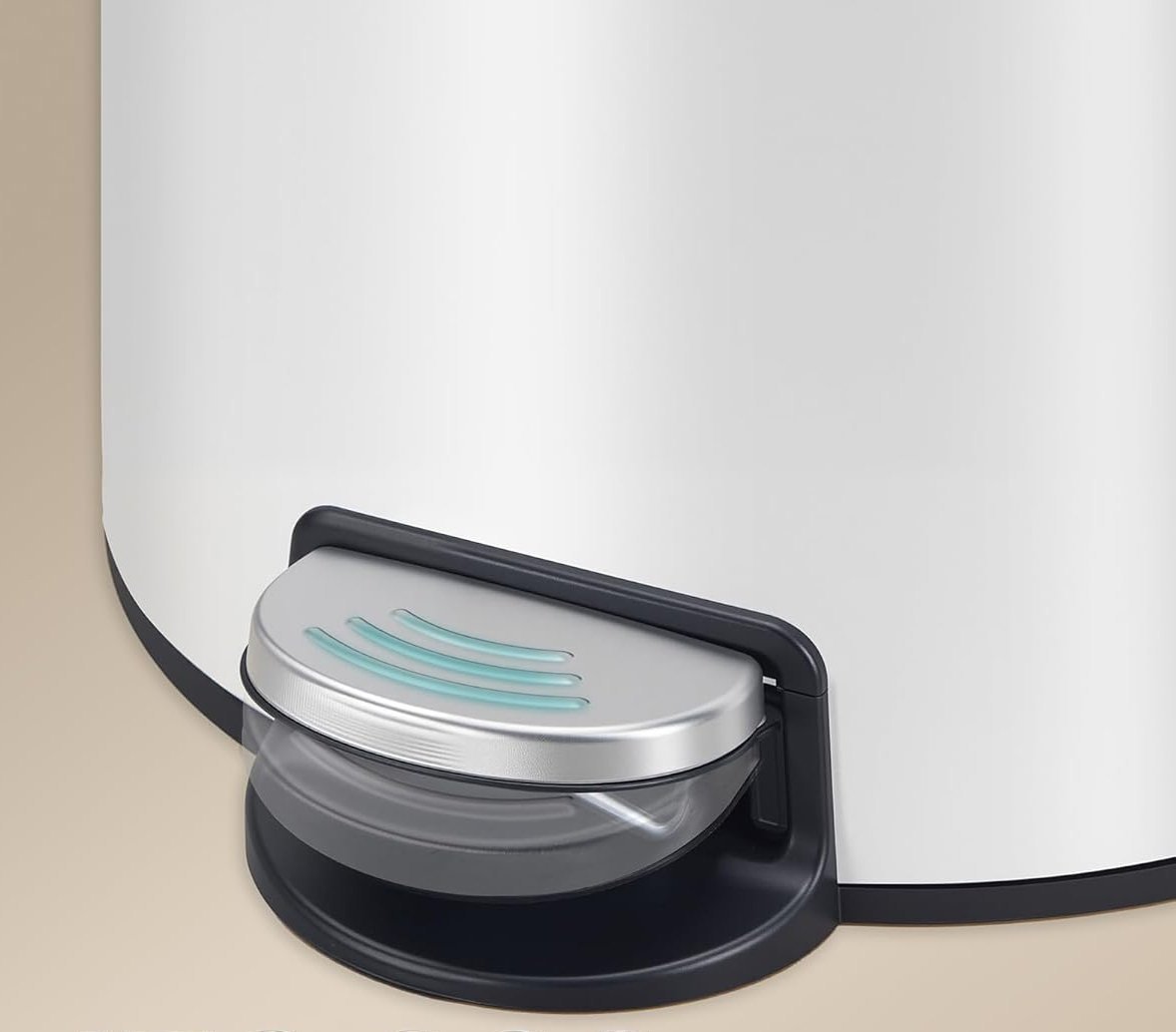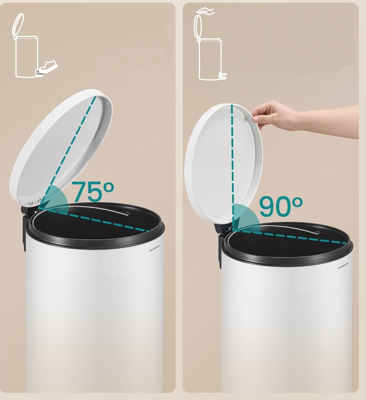 Specificatii tehnice: Brand: SONGMICS Model: LTB021WZ01 Capacitate: 20 L Material exterior: Otel Material interior: Plastic PP Material capac: Plastic ABS Culoare: Alb Mecanism deschidere: Pedala Sistem inchidere: Soft close (inchidere lenta) Accesorii incluse: 15 saci menajeri compatibili Dimensiuni: 29.5 x 37.1 x 44.2 cm Inaltime cu capac deschis: 73 cm Scurta descriere: Alege un cos de gunoi modern si practic, perfect pentru utilizare zilnica. Cu deschidere fara atingere si inchidere silentioasa, acest model ofera igiena, confort si un design elegant potrivit oricarui spatiu interior. Caracteristici principale: Deschidere hands-free cu pedala rezistenta Capac cu inchidere lenta si silentioasa Galeata interioara detasabila pentru curatare usoara Design modern din otel, usor de intretinut Capac rabatabil la 90 de grade pentru golire rapida Include 15 saci menajeri compatibili Potrivit pentru bucatarie, baie sau living Utilizare igienica si confortabila zilnic