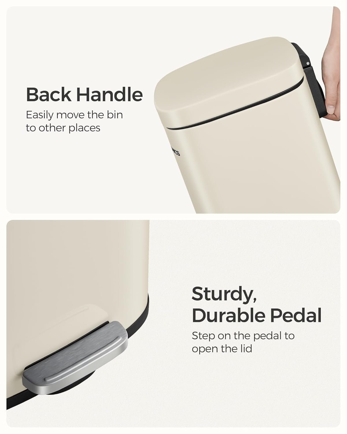 Specification: SONGMICS Cos de gunoi din otel cu pedala, galeata interioara plastic, capac inchidere lenta, 30L, 35x30x63cm, bej
