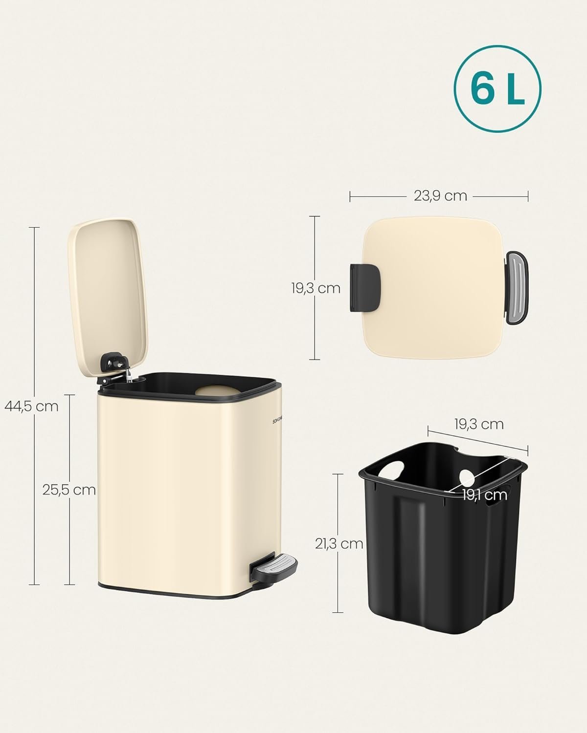 Specification: SONGMICS Cos de gunoi pentru baie, cu pedala si soft-close, 6 litri, bej
