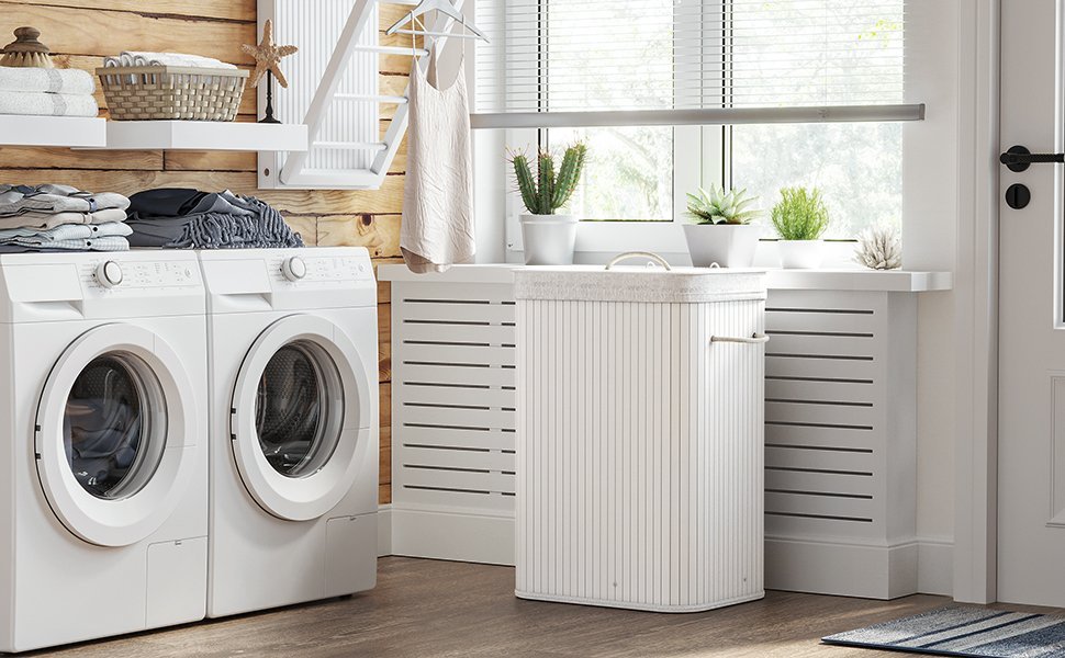 Specification: SONGMICS Cos de rufe din bambus, pliabil, cu captuseala detasabila lavabila, 72L, 40x30x60cm, alb