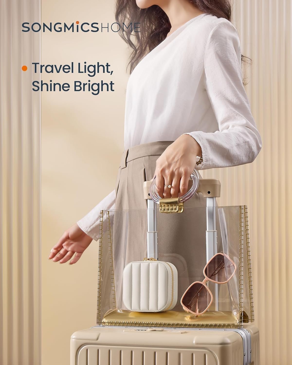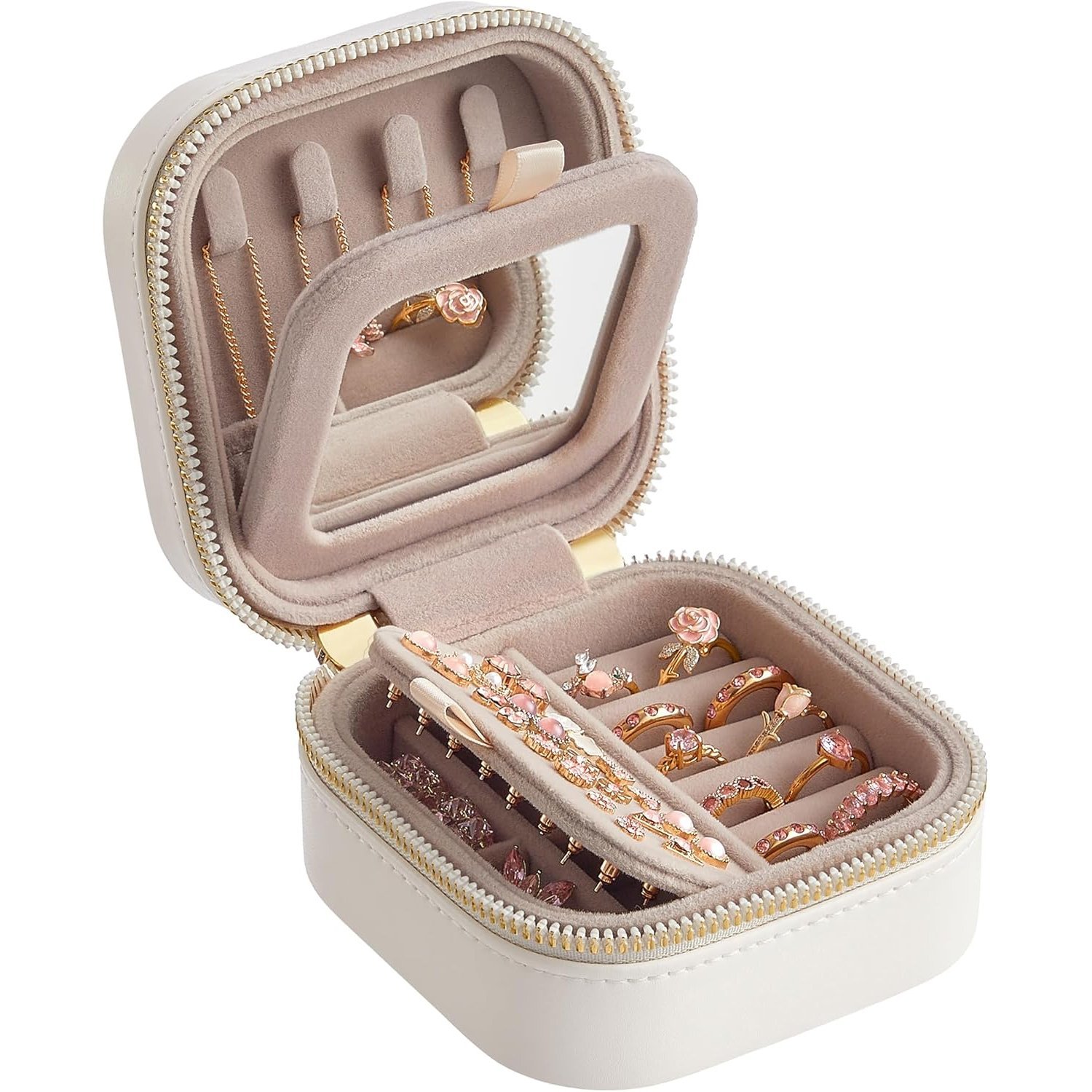SONGMICS Cutie de bijuterii compacta cu oglinda si fermoar, 11x11x6 cm, alb