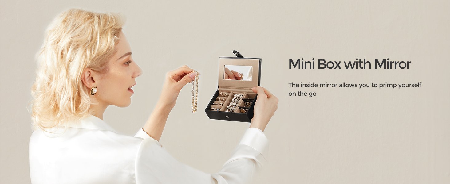 Culoare: Negru Marca: Songmics Material: piele din piele + cadru din fibra de densitate medie + catifea Stil: Modern Caracteristica speciala: oglinda, lacat, portabil Dimensiunile produsului: 18D x 26W x 17H centimetri Forma: Dreptunghiular Despre acest articol Compartimente separate, buzunare de catifea, deschideri pentru cercei cu stifturi, fante pentru inele, perne pentru ceasuri, carlige laterale pentru agatarea colierelor fara incurcaturi — aceasta cutie de bijuterii cu 3 niveluri ofera spatiu de depozitare pentru diversele tale bijuterii. Mini husa de calatorie separata: Acest organizator de bijuterii vine cu o mini cutie de bijuterii de calatorie, care este perfecta pentru a aduce cateva piese in calatorie. Carcasa mini are si o oglinda. Lacat si maner practice: Aceasta cutie de bijuterii se incuie cu 2 chei pentru a va pastra obiectele de valoare in siguranta si la indemana; manerul de pe capac va permite sa transportati cu usurinta cutia de bijuterii oriunde doriti. Calitate: Suprafete netede din PU, corp solid din MDF, captuseala moale din catifea, cusaturi ingrijite – aceasta cutie de bijuterii care se poate incuia este solida si durabila pentru a va insoti pentru anii urmatori. Idee de cadou de lux: Daruiti acest organizator de bijuterii elegant si bine realizat celor dragi de ziua lor de nastere sau aniversare pentru a le surprinde! Sau, rasfatati-va cu aceasta fermecatoare cutie de bijuterii – o meriti!