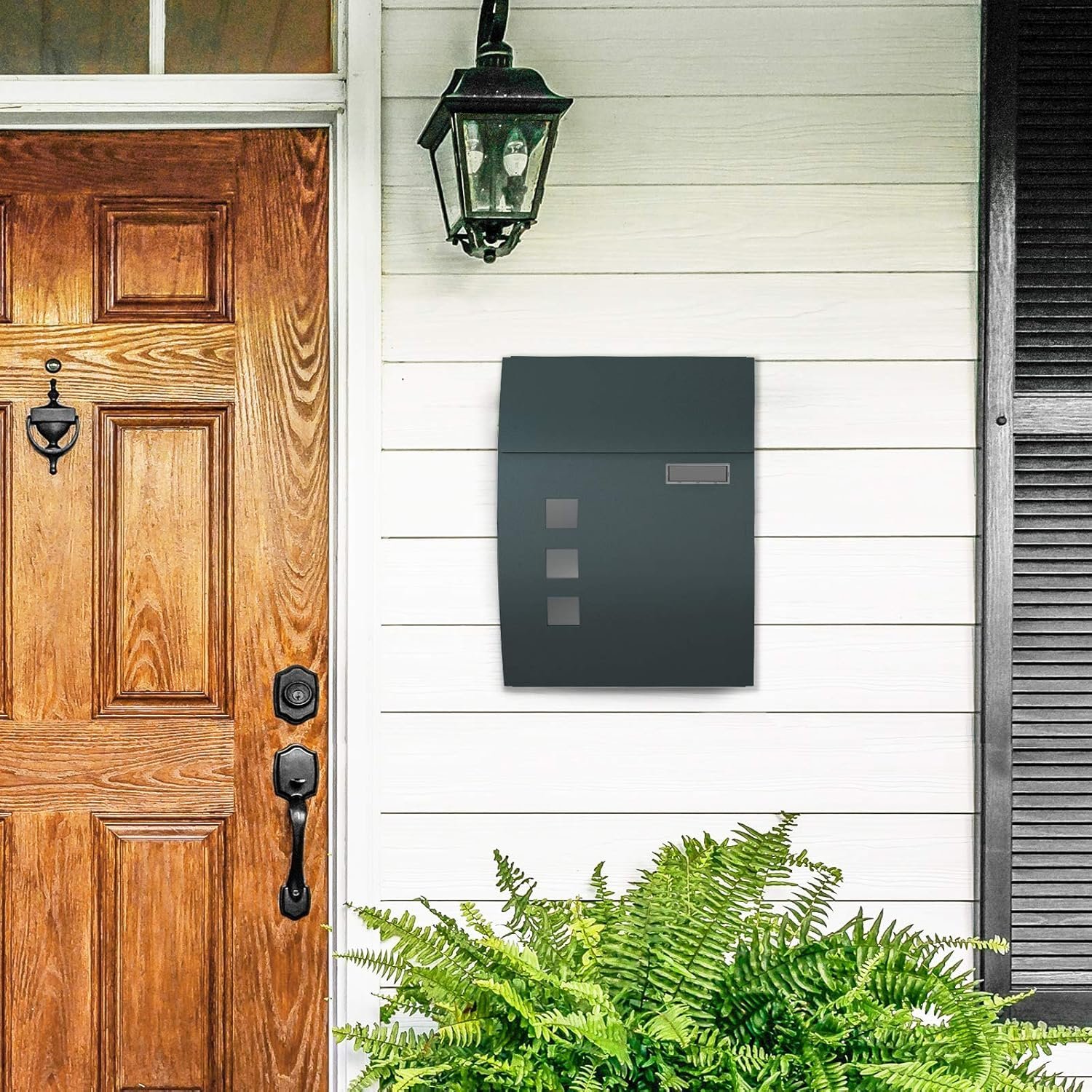 Specification: SONGMICS Cutie postala 32x10x45 cm, montaj pe perete, cu 3 ferestre si capac protectie ploaie, otel, gri antracit