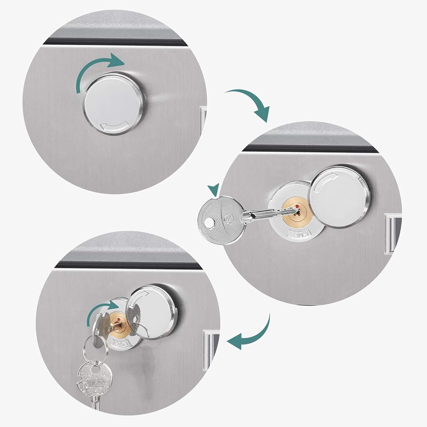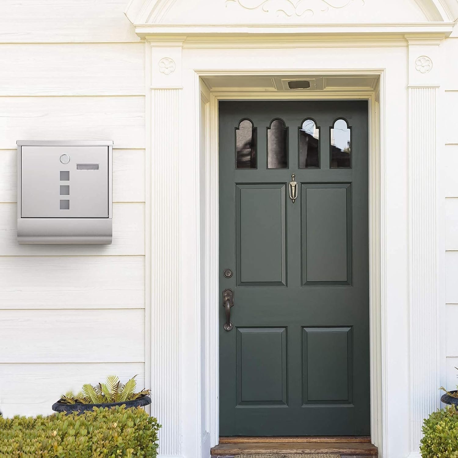 Specificatii: Culoare: Argintiu Material: Otel, cilindru de blocare din cupru Dimensiunea produsului: 9,5 x 30,5 x 33,3 cm (D x W x H) Despre acest articol Aceasta cutie postala este echipata cu un cilindru de blocare din cupru durabil care rezista la rugina si rezista la ani de utilizare. Designul capacului pivotant protejeaza incuietoarea de ploaie, asigurand ca posta dvs. ramane in siguranta.Cu o fanta de 3,5 x 36 cm (D x L), aceasta cutie postala gazduieste cu usurinta corespondenta de dimensiuni C4 si A4, indeplinind cerintele dvs. zilnice de livrare a corespondentei.Ferestrele de vizualizare va permit sa verificati cele mai recente corespondente dintr-o privire. Placuta de identificare asigura livrarea corecta a corespondentei. Suportul pentru ziare va pastreaza ziarele si revistele usor accesibile.Aceasta cutie postala este livrata cu suruburi de expansiune si distantiere din cauciuc, ceea ce face instalarea usoara. O puteti monta fara efort langa usa din fata sau veranda.O cutie postala eleganta, cu o nota contemporana datorita culorii argintii. Fabricata din otel, este atat puternica, cat si rezistenta la rugina, asigurand ani de utilizare.