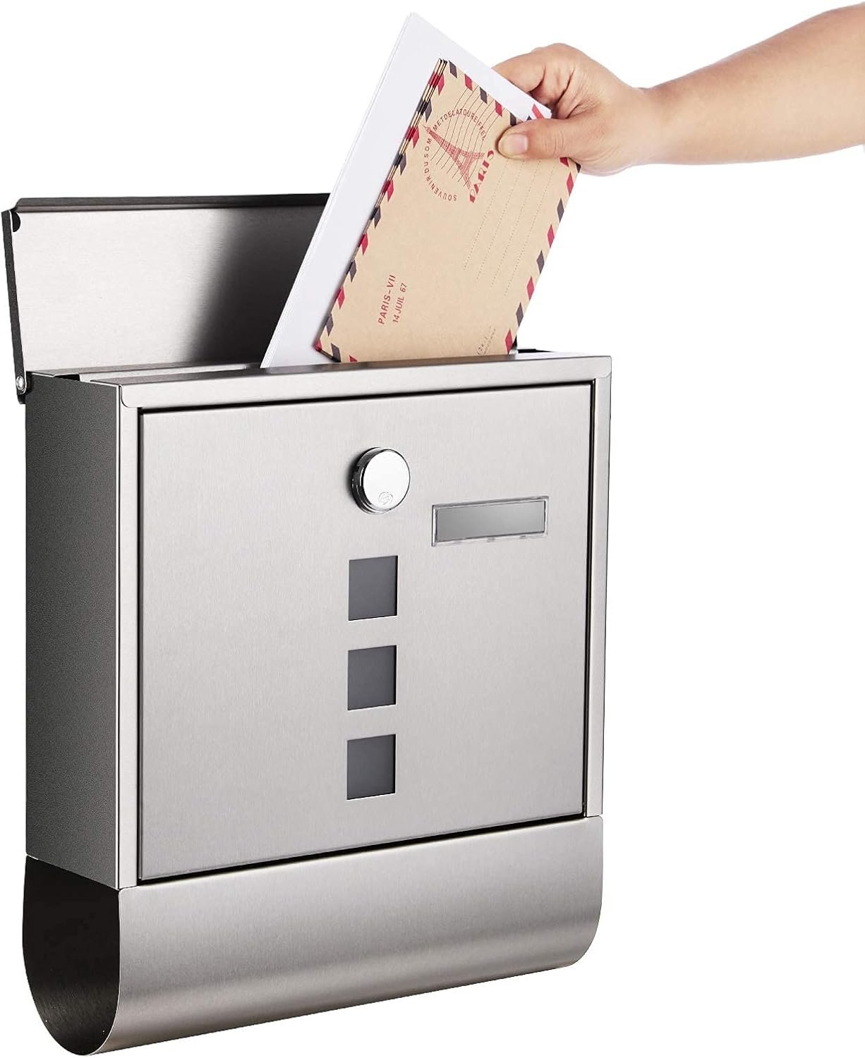 SONGMICS Cutie postala de exterior, pentru gard sau perete, din otel, 31x10x33cm, argintiu
