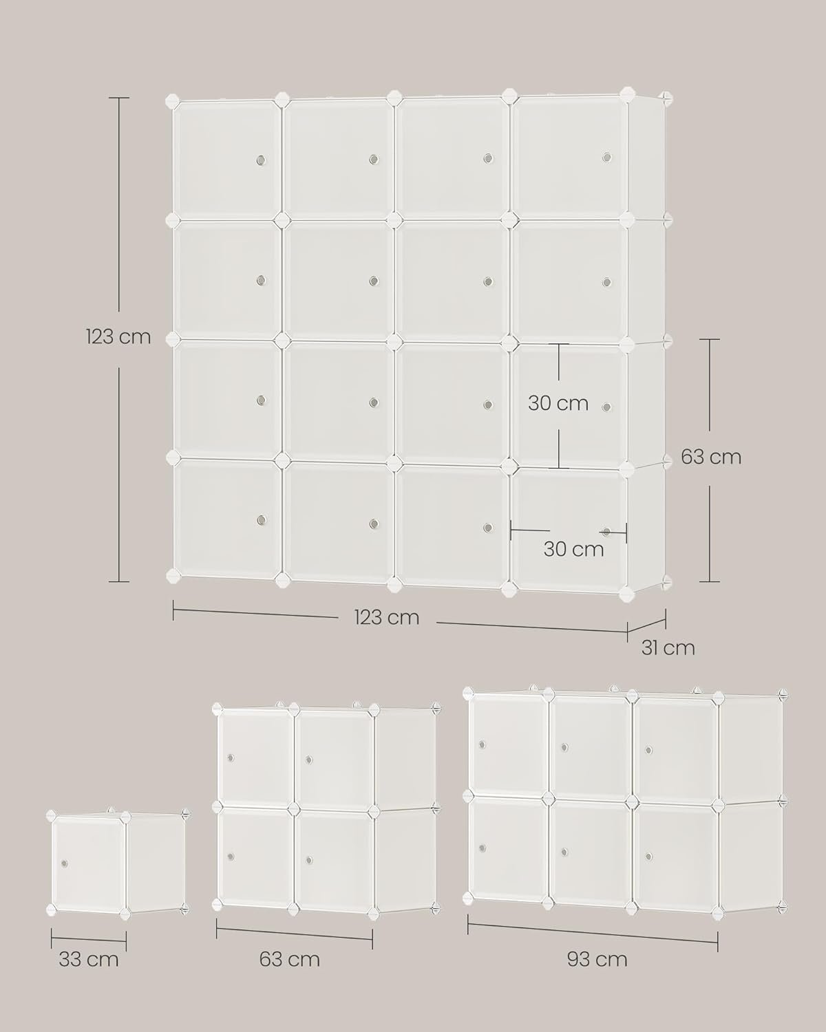 Specification: SONGMICS Dulap modular cu 16 cuburi si usi, cadru metalic, asamblare usoara, 123x123x31 cm, crem