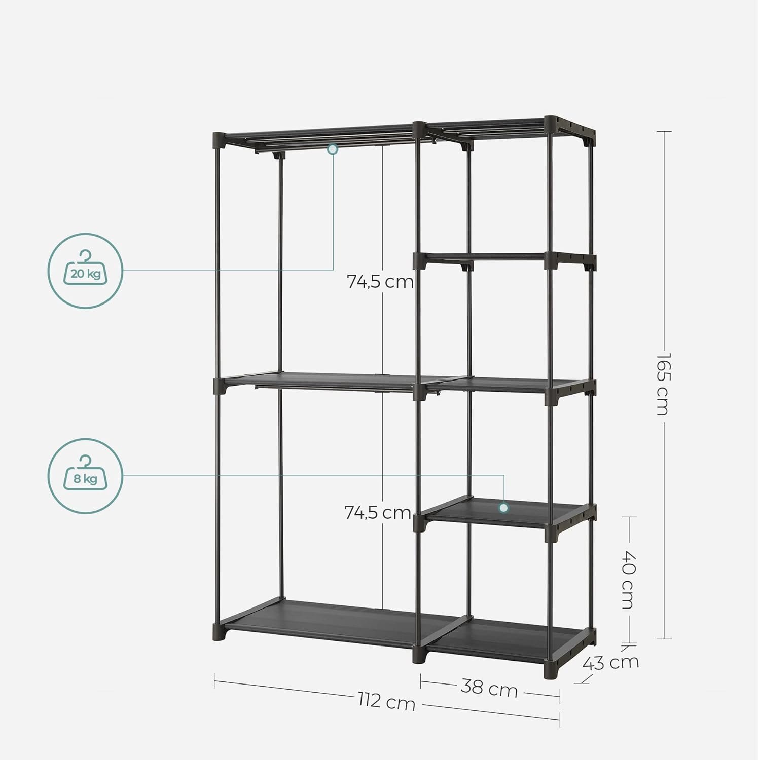 Specification: SONGMICS Dulap textil pliabil cu spatiu pentru umerase si rafturi, cadru metalic, 112x43x165 cm, negru
