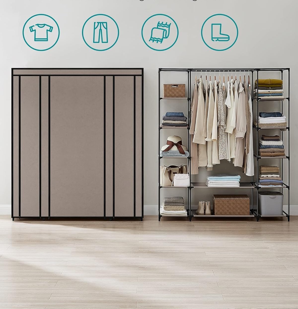 Specification: SONGMICS Garderoba din material textil, dulap portabil, cu rafturi si sina de agatat, 150x45x175cm, taupe