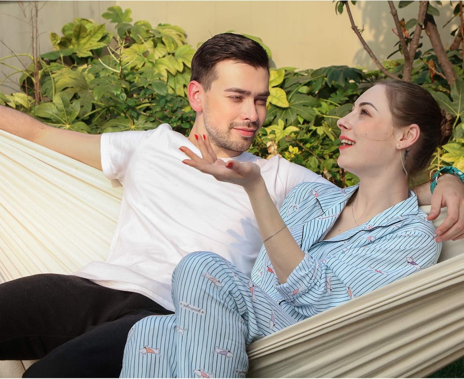 SONGMICS Hamac dublu 210×150 cm, bumbac, portabil cu chingi si carabiniere, bej