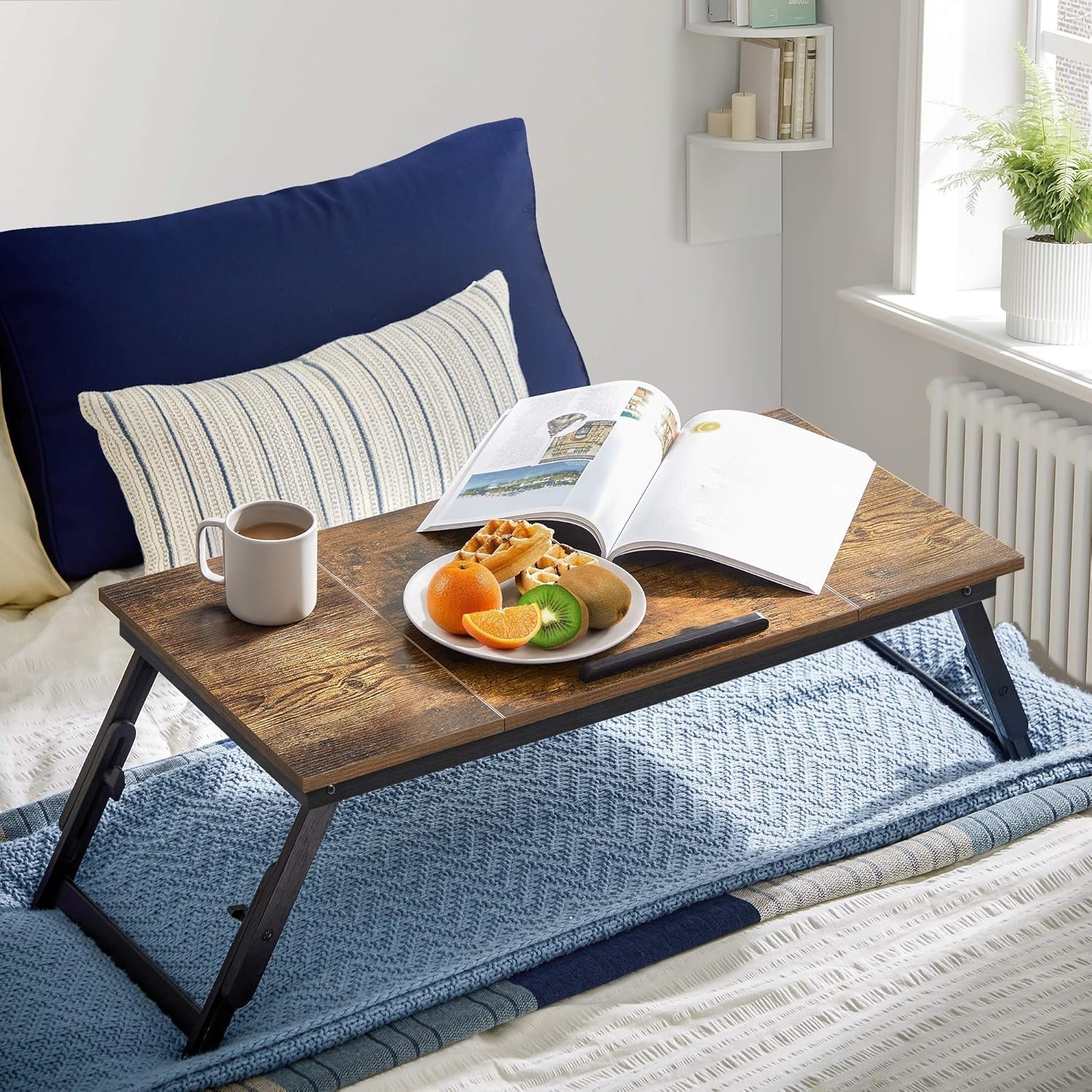 SONGMICS Masa de pat pentru laptop, plabila si reglabila, 71x35x23 cm, maro