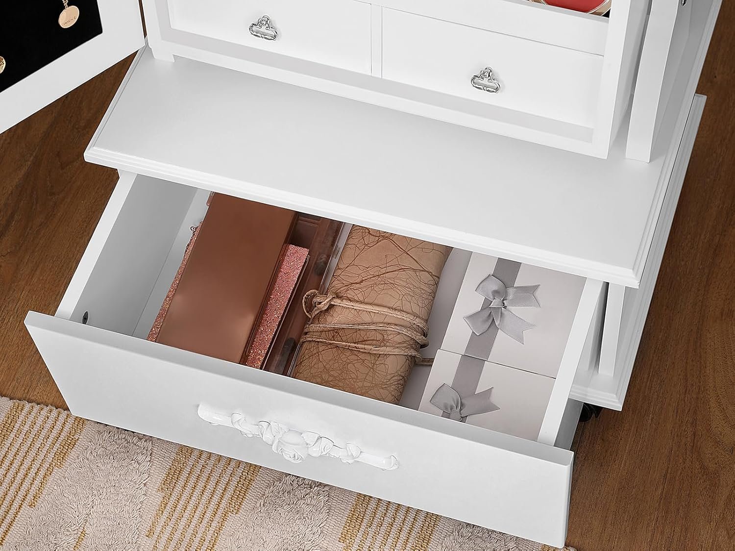Specification: SONGMICS Oglinda de podea cu dulap depozitare bijuterii, iluminare LED si roti, cu cheie, 35x45x156 cm, alb