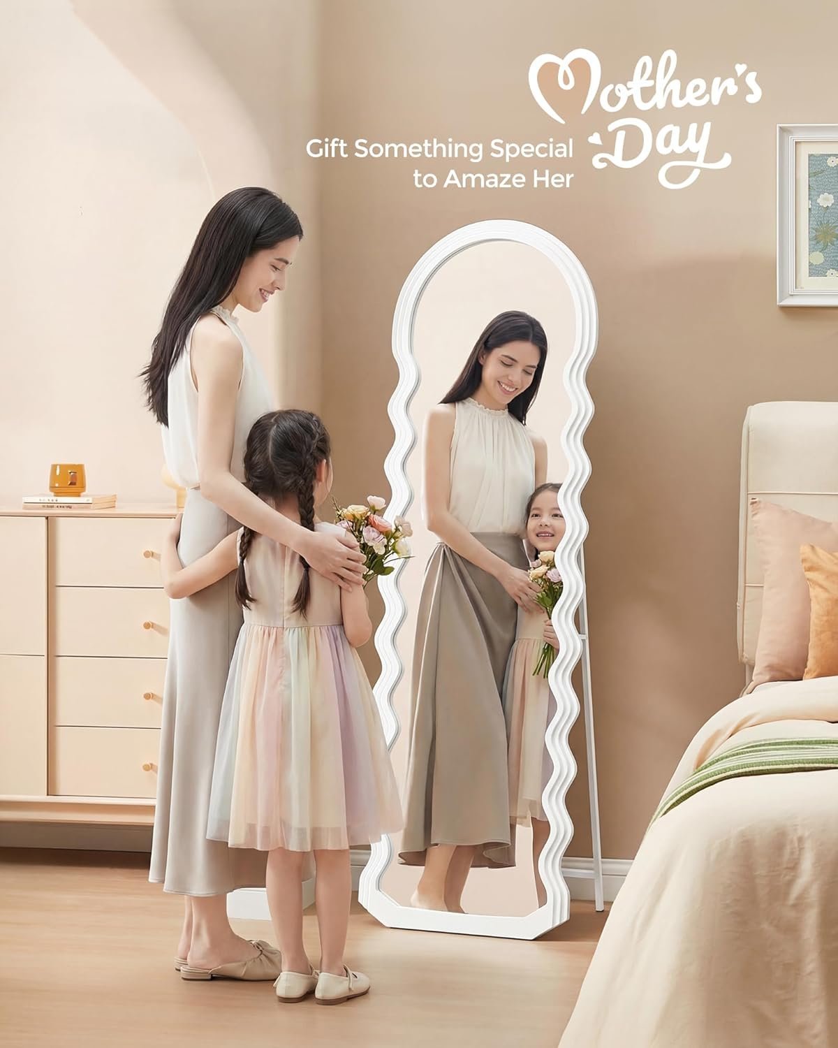 Specification: SONGMICS Oglinda de podea ondulata 160×50 cm, rama MDF cu suport, alb
