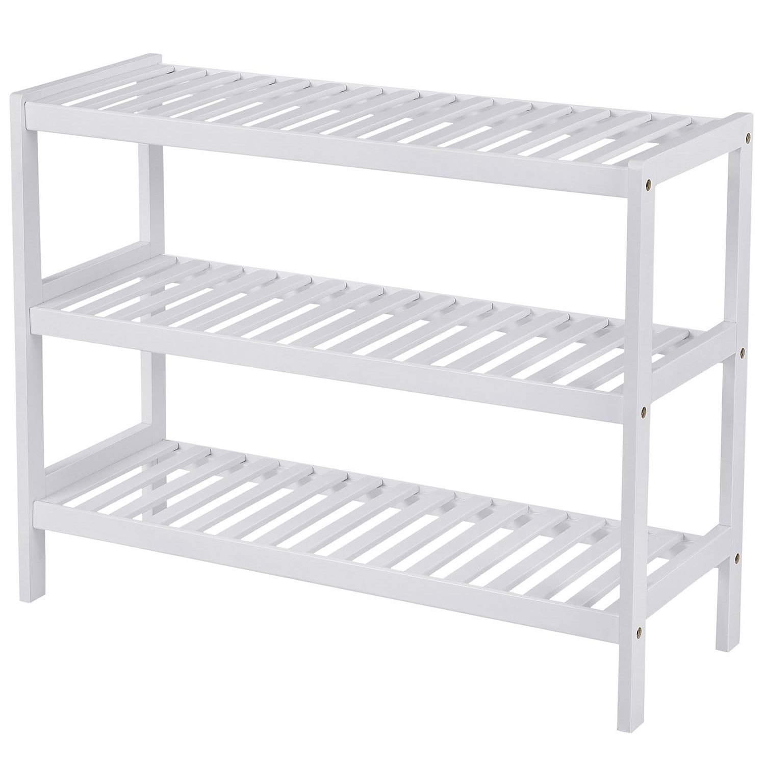 SONGMICS Raft de depozitare din bambus, cu 3 niveluri, 26x70x55cm, alb