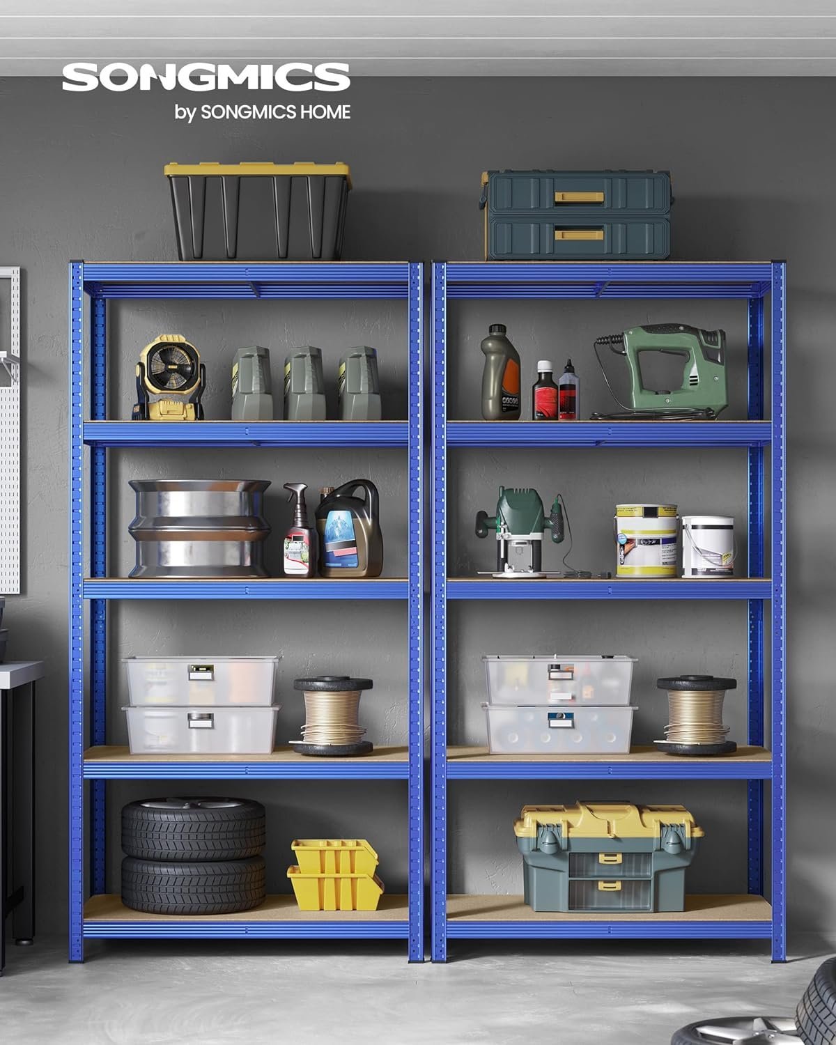 SONGMICS Raft de depozitare metalic, cu rafturi din PAL, 5 polite, max. 600 kg, 200x100x50cm, albastru