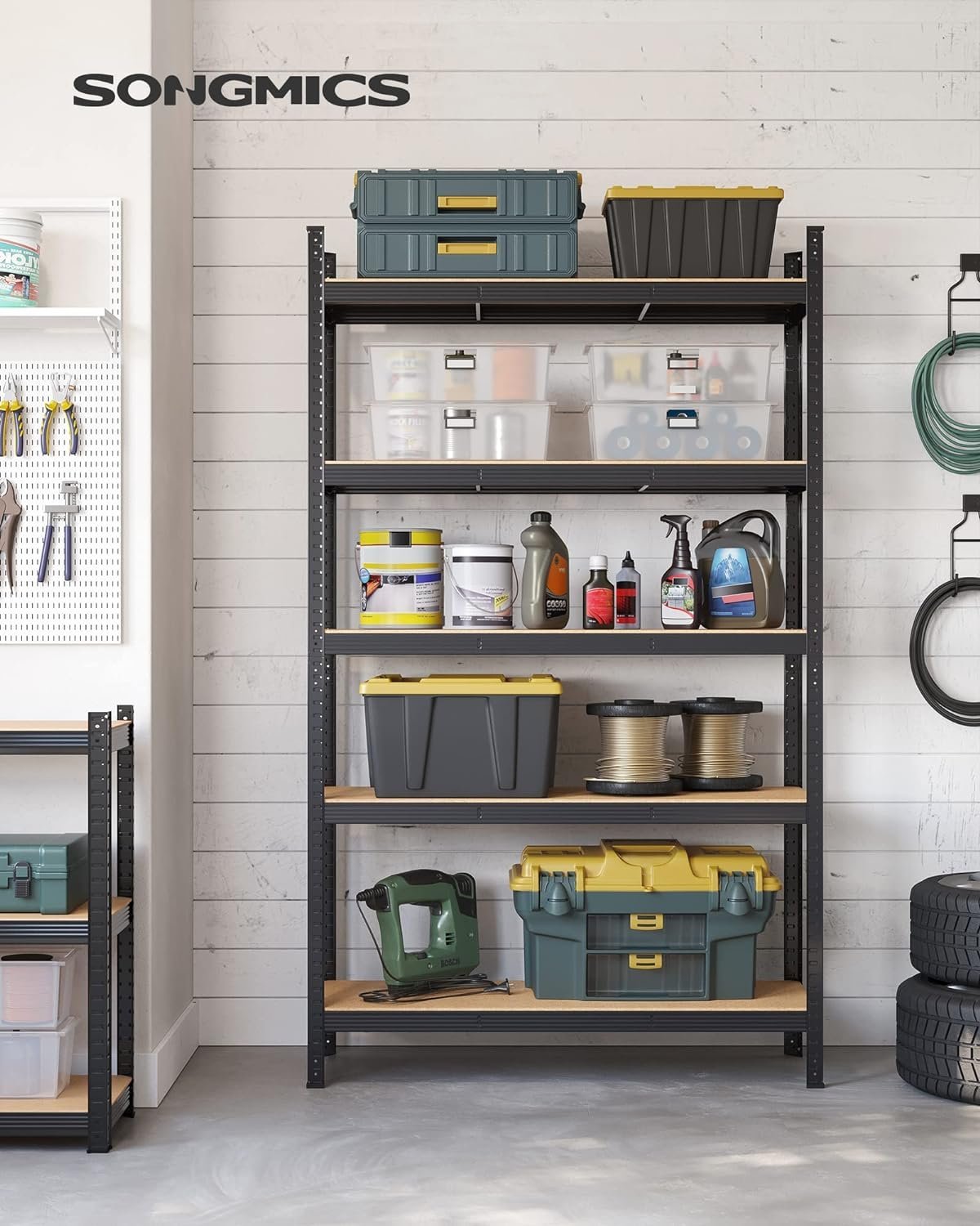 SONGMICS Raft de depozitare metalic, cu rafturi din PAL, 5 polite, max. 875 kg, 200x120x60cm, negru