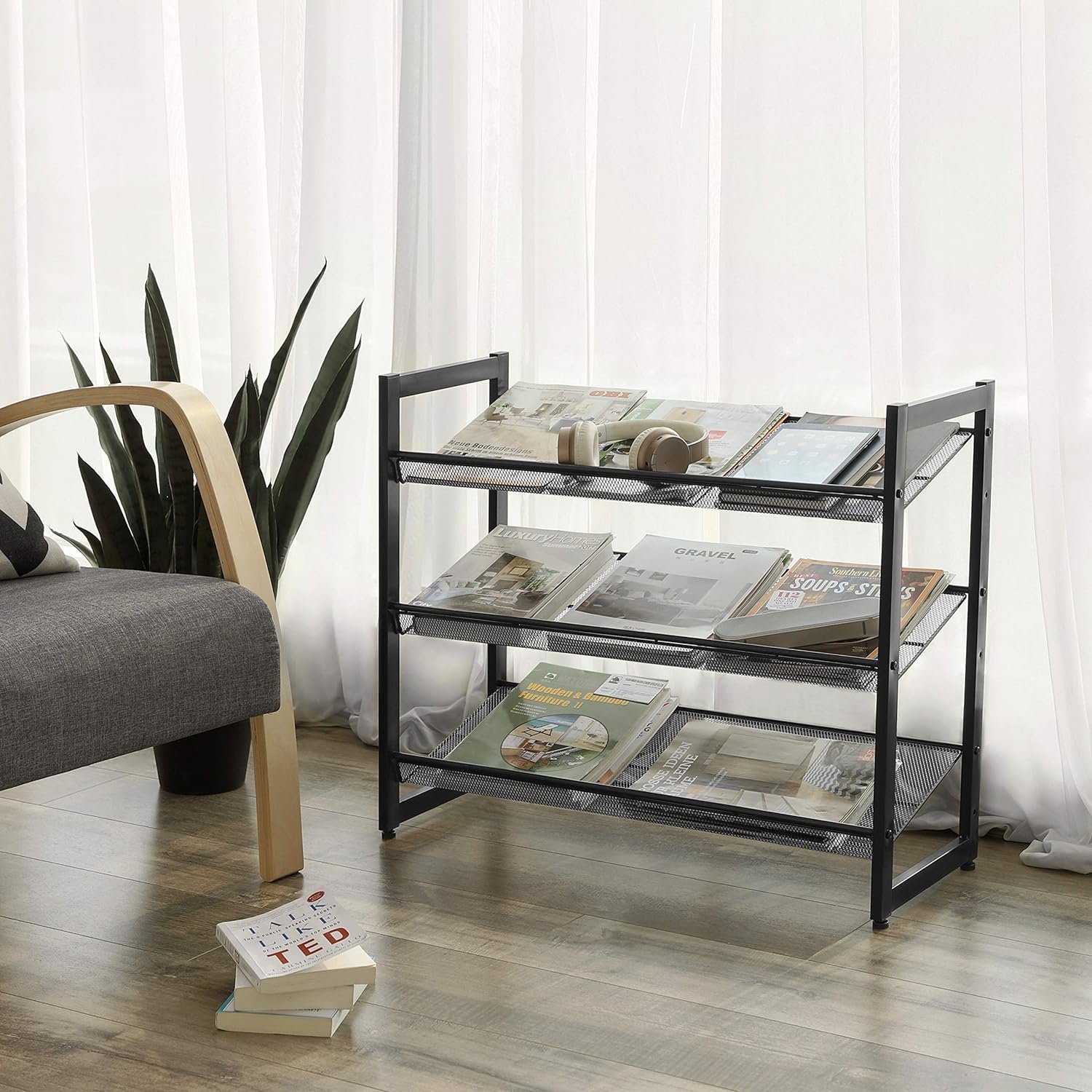 Specificatii: Culoare: negru Material: Tuburi de otel acoperite cu pulbere Dimensiune produs: 74 x 30,7 x 62,8 cm (L x l x H) Greutate neta: 3,6 kg Despre acest articol Personalizabil dupa cum aveti nevoie: Puteti alege sa asamblati rafturile plat sau inclinat pentru un acces mai usor la pantofi. De asemenea, puteti stivui 2 suporturi pentru spatiu suplimentar de depozitare. Pantofii mai inalti se potrivesc, de asemenea: Puteti elimina un nivel pentru a se potrivi cu cizme si mai inalte. 3 niveluri, gazduieste 9-12 perechi: Acest organizator de pantofi cu 3 niveluri poate tine 3 perechi de pantofi pentru barbati sau 4 perechi de pantofi de dama pe fiecare nivel, oferind o casa pentru pantofii tai de zi cu zi. Solid si stabil: Cu un cadru metalic puternic si rafturi din plasa densa, acest raft pentru depozitarea pantofilor este construit pentru a rezista. Si mai bine, vine cu picioare reglabile pentru a-l mentine stabil chiar si pe podele neuniforme. Nu exista o asamblare dificila aici: Acest suport metalic pentru pantofi vine cu piese numerotate si instructiuni detaliate pentru a va ajuta sa il configurati inainte de a va da seama.