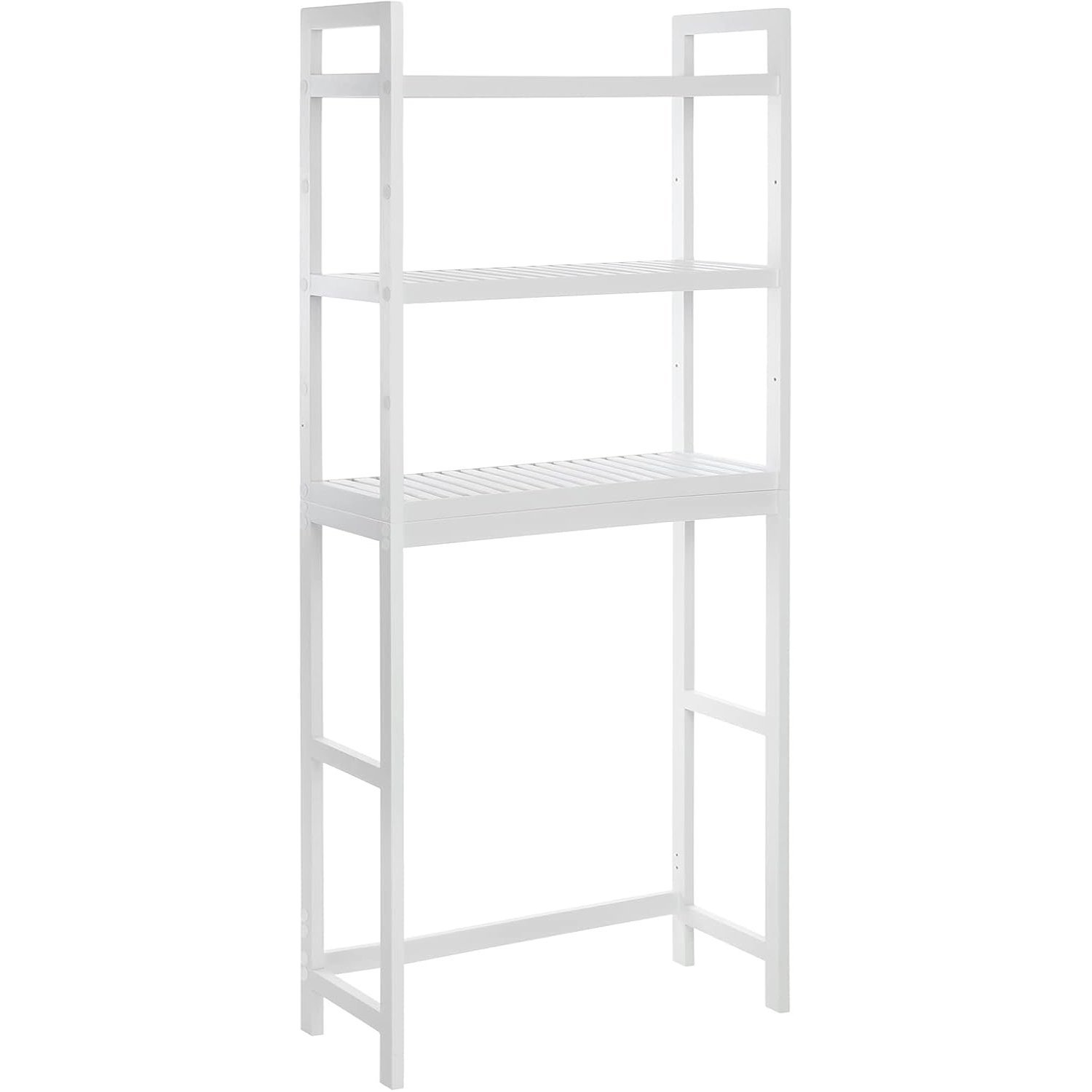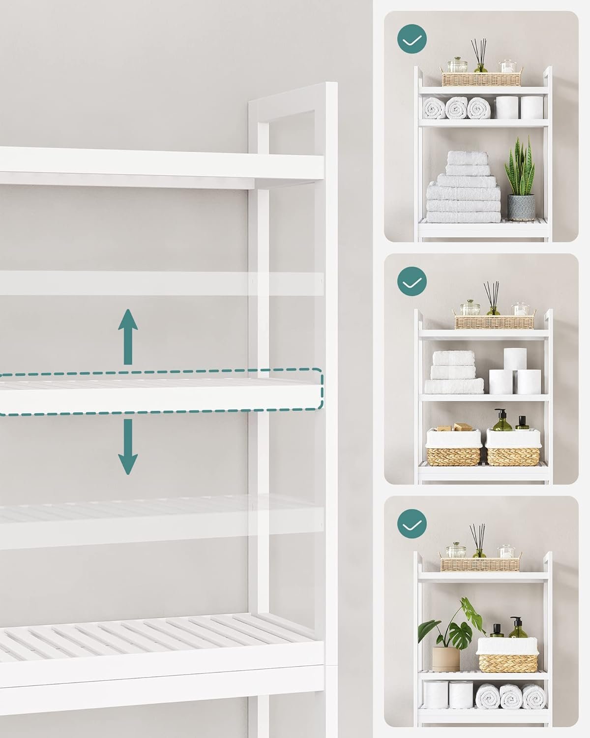 SONGMICS Raft de depozitare pentru baie, suprapunere peste masina spalat sau vas WC, din bambus, rafturi reglabile, 26x63x163 cm, alb