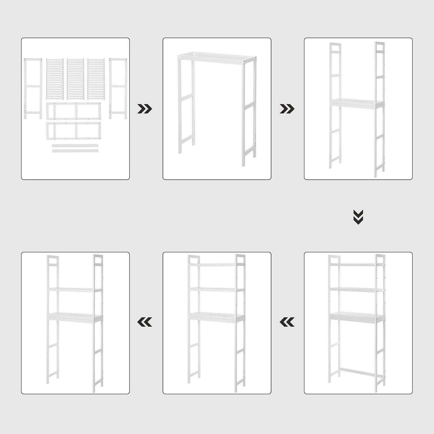 Specification: SONGMICS Raft de depozitare pentru baie, suprapunere peste masina spalat sau vas WC, din bambus, rafturi reglabile, 26x63x163 cm, alb