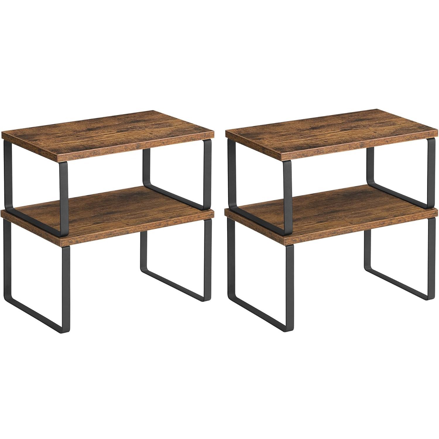 SONGMICS Rafturi bucatarie 30x20x16 cm, set 4 buc, modulare, suprapozabile si extensibile, metal si PAL, maro rustic