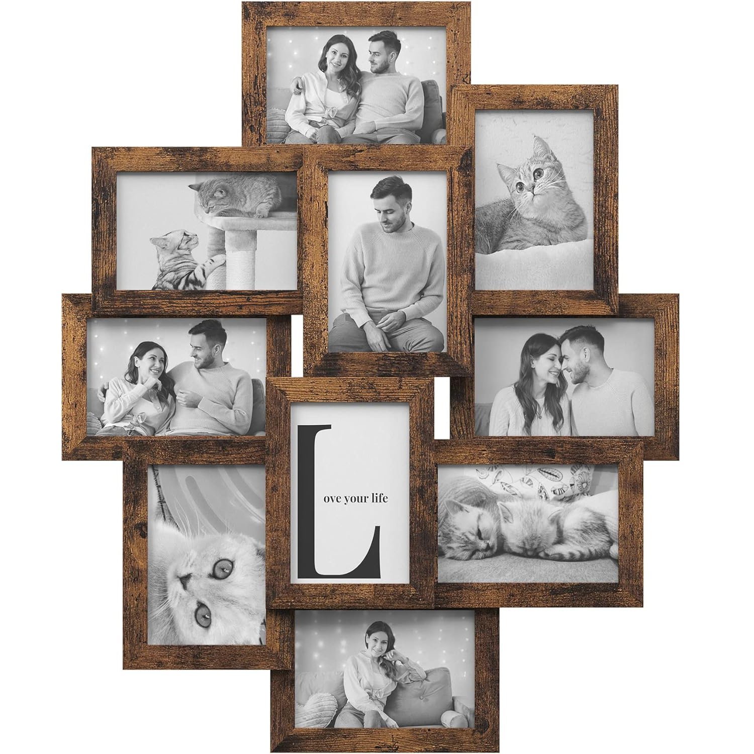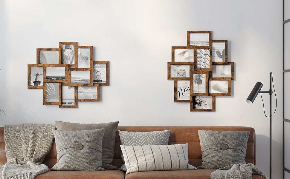 SONGMICS Rama foto de perete din MDF, colaj de 10 fotografii, 60x49cm, maro rustic