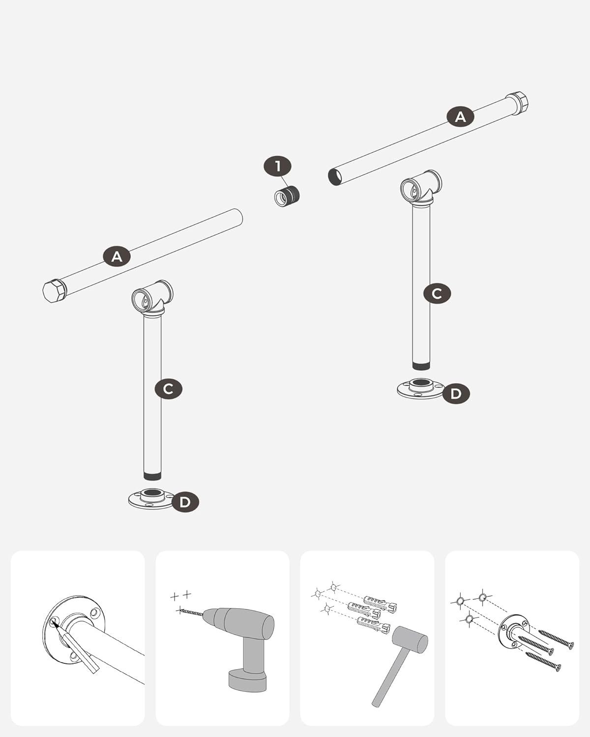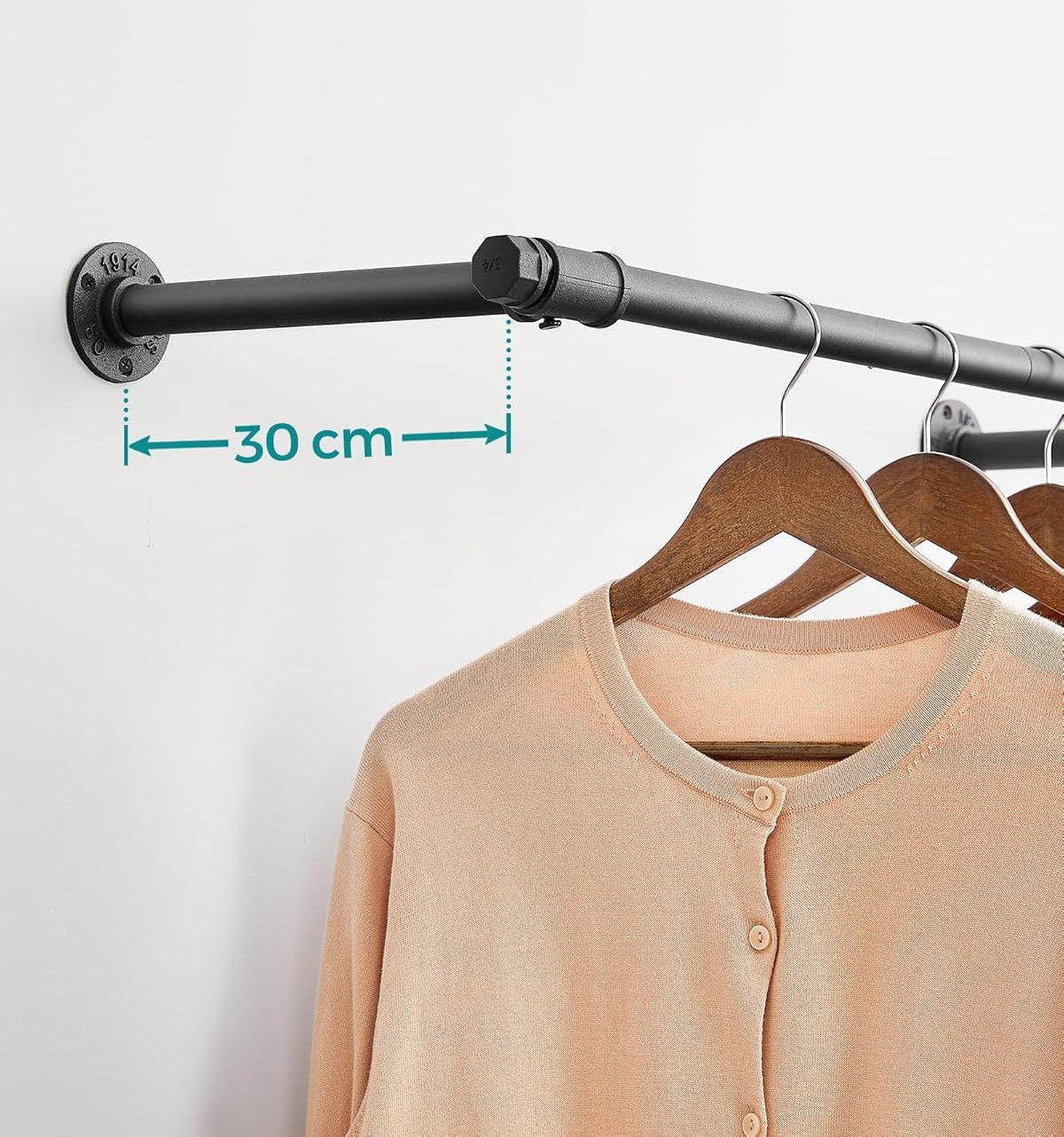 Specification: SONGMICS Set 2 sine metalice de agatat haine, montare pe perete, aspect industrial, 84x30x7cm, negru