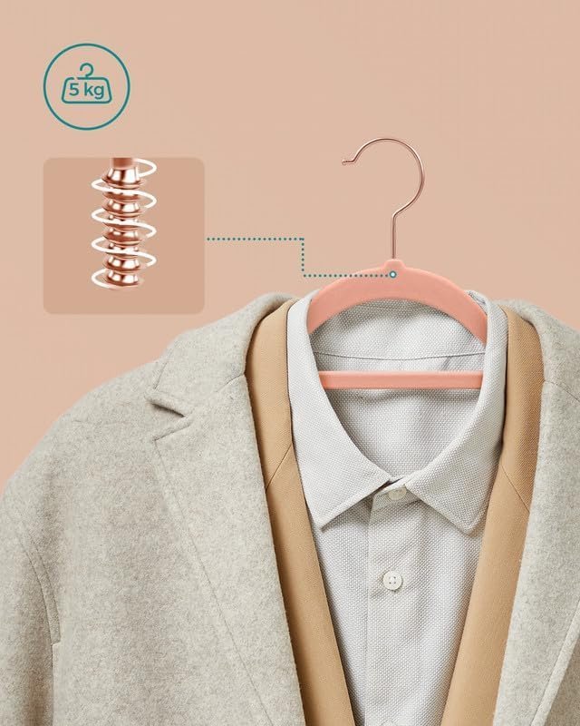 Specification: SONGMICS Set de 30 de umerase pentru haine, anti-alunecare cu catifea, bara de cravata si carlig pivotant, 43,5 cm, roz