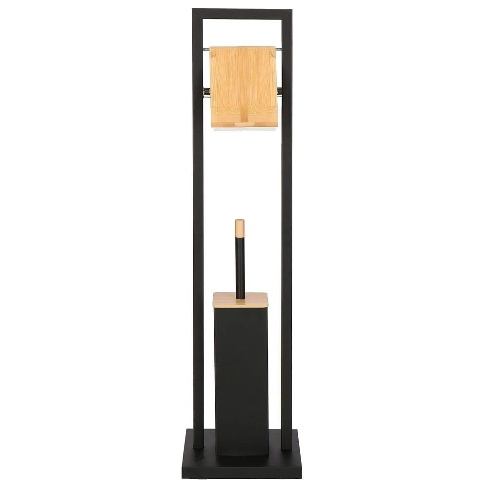 Specification: Stand cu perie WC si suport hartie igienica, metal si bambus, 80cm, negru