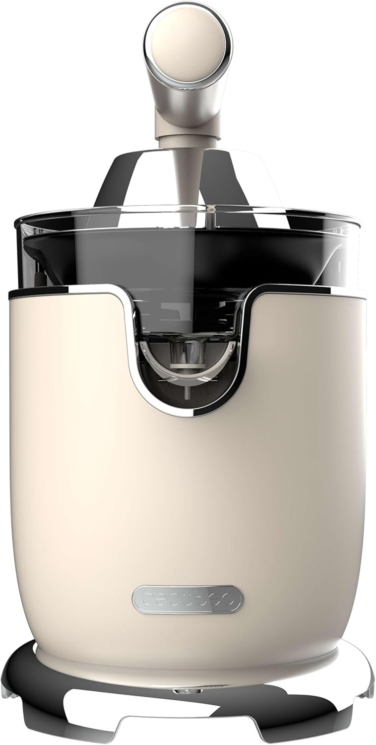 Storcator de citrice Cecotec RetroJuice 1000, 1000W, 2 conuri, anti picurare Cecotec Xqueeze RetroJuice 1000 , Storcator electric pentru citrice, 1000 W Transforma prepararea sucurilor proaspete intr-o activitate rapid si placuta cu storcatorul electric Cecotec Xqueeze RetroJuice 1000. Ideal pentru portocale, lamai, grapefruit si alte citrice, acest model imbina puterea, eficienta si un design compact perfect pentru orice bucatarie. Caracteristici principale Putere mare , 1000 W: Motor puternic care stoarce eficient fructele, obtinand cantitatea maxima de suc. Doua conuri detasabile: Un con mare din inox si unul mic din plastic, potrivite pentru citrice de diverse dimensiuni. Filtru din otel inoxidabil: Oferind un suc curat, fara pulpa excesiva si foarte usor de curatat. Sistem anti-picurare si turnare directa: Sucul curge direct in pahar, fara murdarie sau stropi. Capacitate 0.5 L: Potrivit pentru uz zilnic si pentru intreaga familie. Piese lavabile la masina de spalat vase: Intretinere rapida si usoara. Avantaje si beneficii Stoarcere rapida si fara efort datorita bratului cu presiune. Suc proaspat oricand, cu minim de efort. Design modern, compact, perfect pentru orice tip de bucatarie. Versatil pentru toate tipurile de citrice datorita conurilor interschimbabile. Curatare foarte simpla datorita componentelor detasabile.