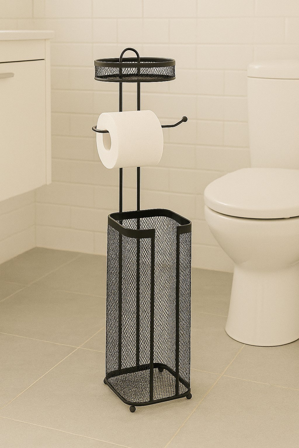 Specificatii tehnice Marca: 5Five Model: Mayaj Culoare: Negru Material: Otel Dimensiuni produs: L. 17,5 x P. 15,7 x H. 73,3 cm Scurta descriere Suportul Mayaj de la 5Five este o solutie eleganta si practica pentru depozitarea si utilizarea rolelor de hartie igienica. Realizat din otel vopsit negru, ofera un design minimalist si se potriveste perfect in baile moderne. Caracteristici principale Structura metalica solida si durabila Design compact cu functie dubla: suport si depozitare Culoare neagra pentru un aspect modern Usor de amplasat si de mutat Ideal pentru bai de orice dimensiune
