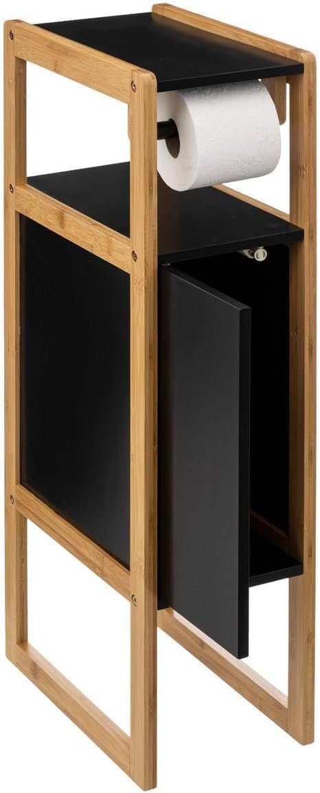Suport hartie igienica 5Five Natureo cu dulapior, MDF, 33x20x80 cm, negru