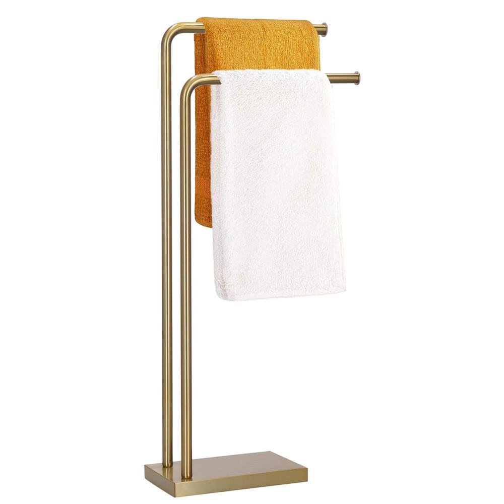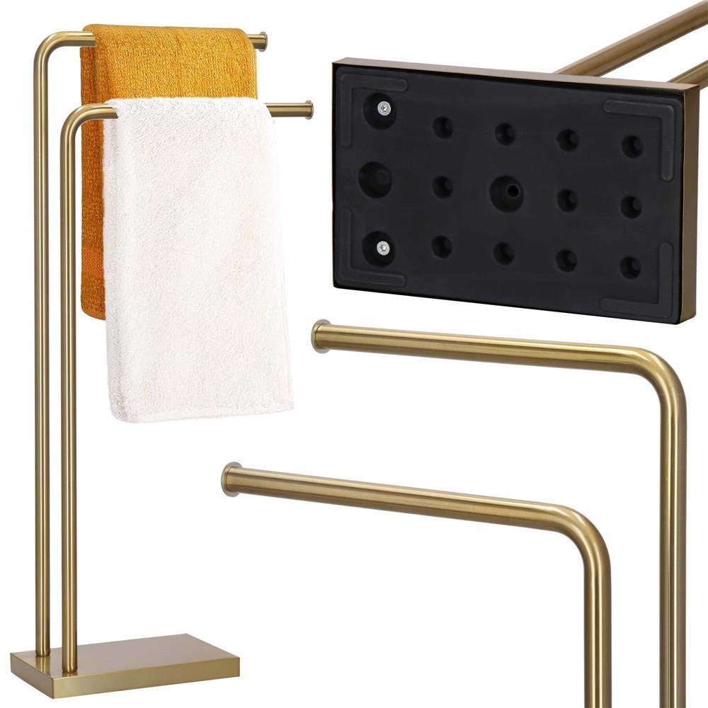 Suport metalic de baie pentru prosoape, cu 2 brate, 80 cm, auriu mat