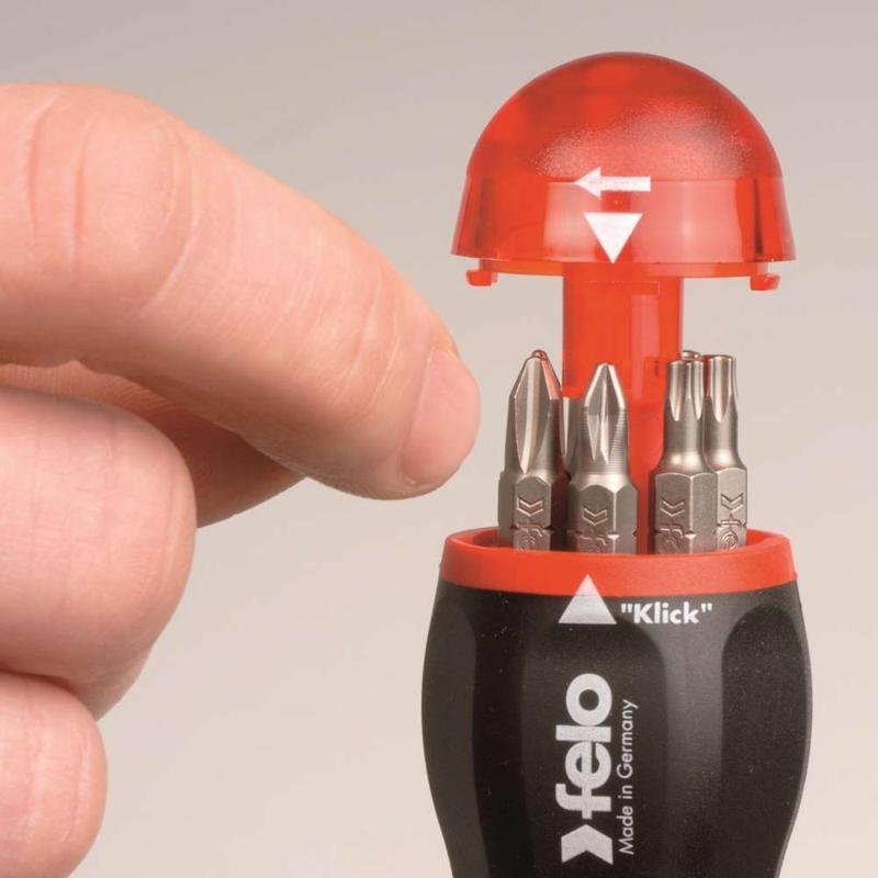 Surubelnita cu magazie si clichet, Felo, 8 biti drepti, PH, PZ si Torx