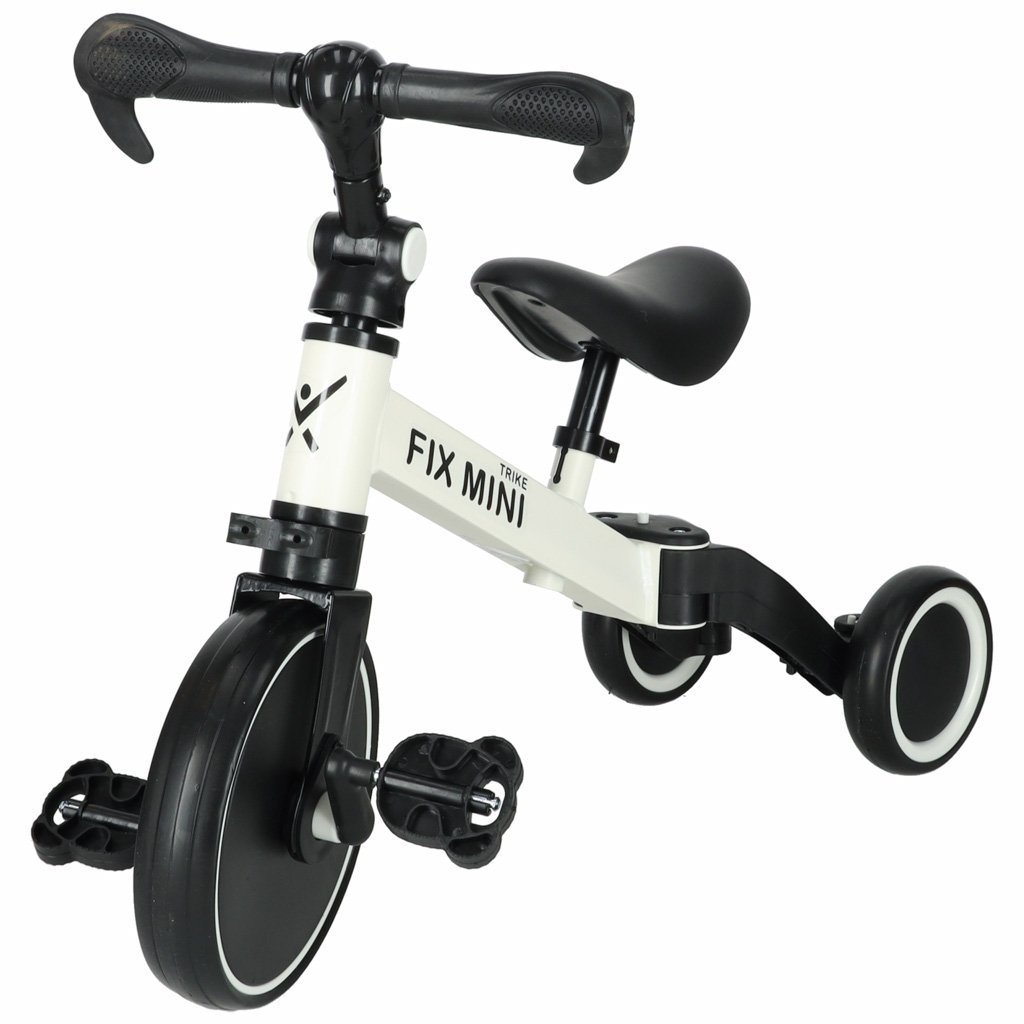 Specificatii tehnice: Material: cadru din otel, manere cauciuc, roti din spuma si plastic Culoare: alb-negru Varsta recomandata: 1.5–5 ani Greutate maxima suportata: 30 kg Dimensiuni tricicleta: 67 x 47 x 51 cm Lungime cadru: 31 cm Distanta sezut–ghidon: 18 cm Inaltime ghidon: reglabila 41–50 cm Latime ghidon: 32 cm Inaltime sezut: reglabila 31–38 cm Dimensiuni sezut: 24 x 13 cm Diametru roata fata: 22 cm Diametru roti spate: 15 cm Dimensiuni ambalaj: 61 x 17 x 21 cm Scurta descriere: Tricicleta 3in1 TRIKE FIX Mini este partenerul ideal pentru micii exploratori. Poate fi folosita ca tricicleta clasica, bicicleta fara pedale sau model cu roti spate apropiate – pregatind copilul pentru bicicleta normala. Cu sezut si ghidon reglabile, roti din spuma si cadru solid, asigura confort si siguranta in fiecare etapa de crestere. Ideala pentru dezvoltarea echilibrului, coordonarii si independentei celor mici. Caracteristici principale: 3 moduri de utilizare: tricicleta, bicicleta fara pedale si varianta cu roti apropiate Reglaj pe inaltime pentru sezut si ghidon – creste odata cu copilul Roti din spuma – silentioase si fara riscul de perforare Ghidon cu manere cauciucate antialunecare Constructie solida din otel – sustine pana la 30 kg Perfecta pentru dezvoltarea abilitatilor motrice si a echilibrului