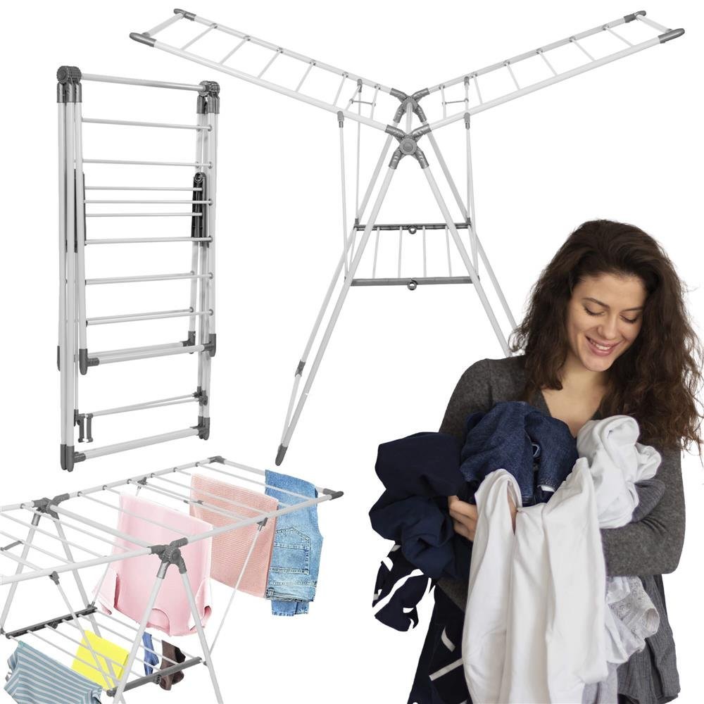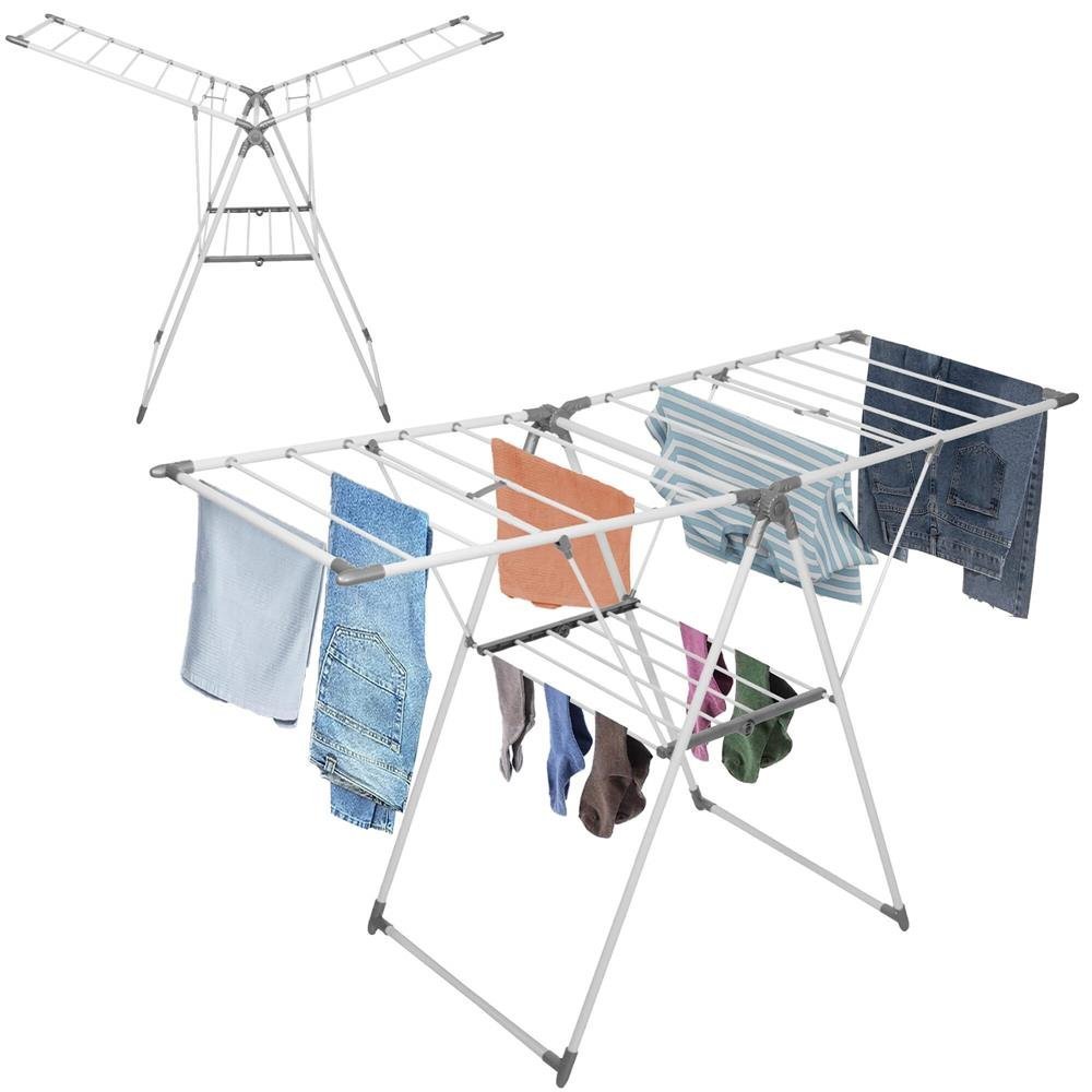 Uscator de rufe pliabil, 3 platforme cu etaj intermediar de agatat, 156x57x100cm