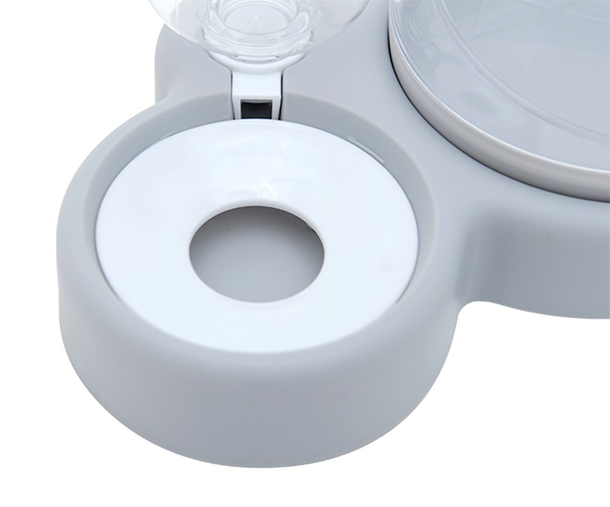 Dozator automat de apa si bol dublu pentru mancarea pisicilor. Panta castronului la un unghi de 15 grade face ca animalul tau sa manance mai usor. Sticla de apă cu o capacitate de 0,5 L permite animalului dumneavoastră să aibă acces la apă proaspătă în orice moment. Datorită unei supape speciale, dispozitivul adaugă automat apă din rezervor în vas. Designul compact va funcționa bine în bucătăriile mici și coridoarele.